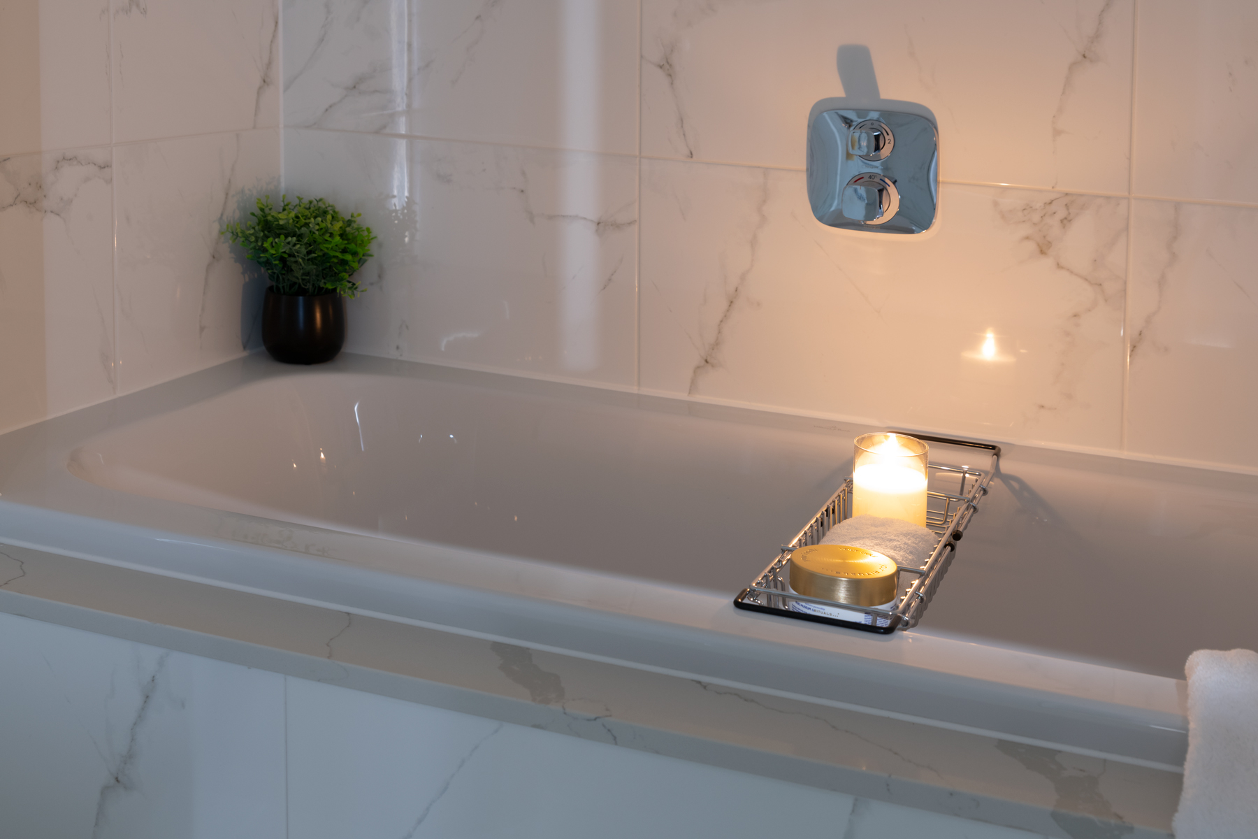 Bathrooms and Ensuites • Beautifully presented bathrooms • Minoli tiles to walls and floors • Villeroy and Boch sanitaryware • Integrated bathroom storage • Chrome electric towel rails • Hansgrohe chrome taps and fittings • Inlaid mirrors • Thermostatically controlled showers with screens • Durable contemporary baths Bedroom • Draks Canto design wardrobes to main bedroom • Fitted wardrobes to second bedroom Home Entertainment and Communication • TV aerial & HDMI points to living areas ready to receive Sky Q