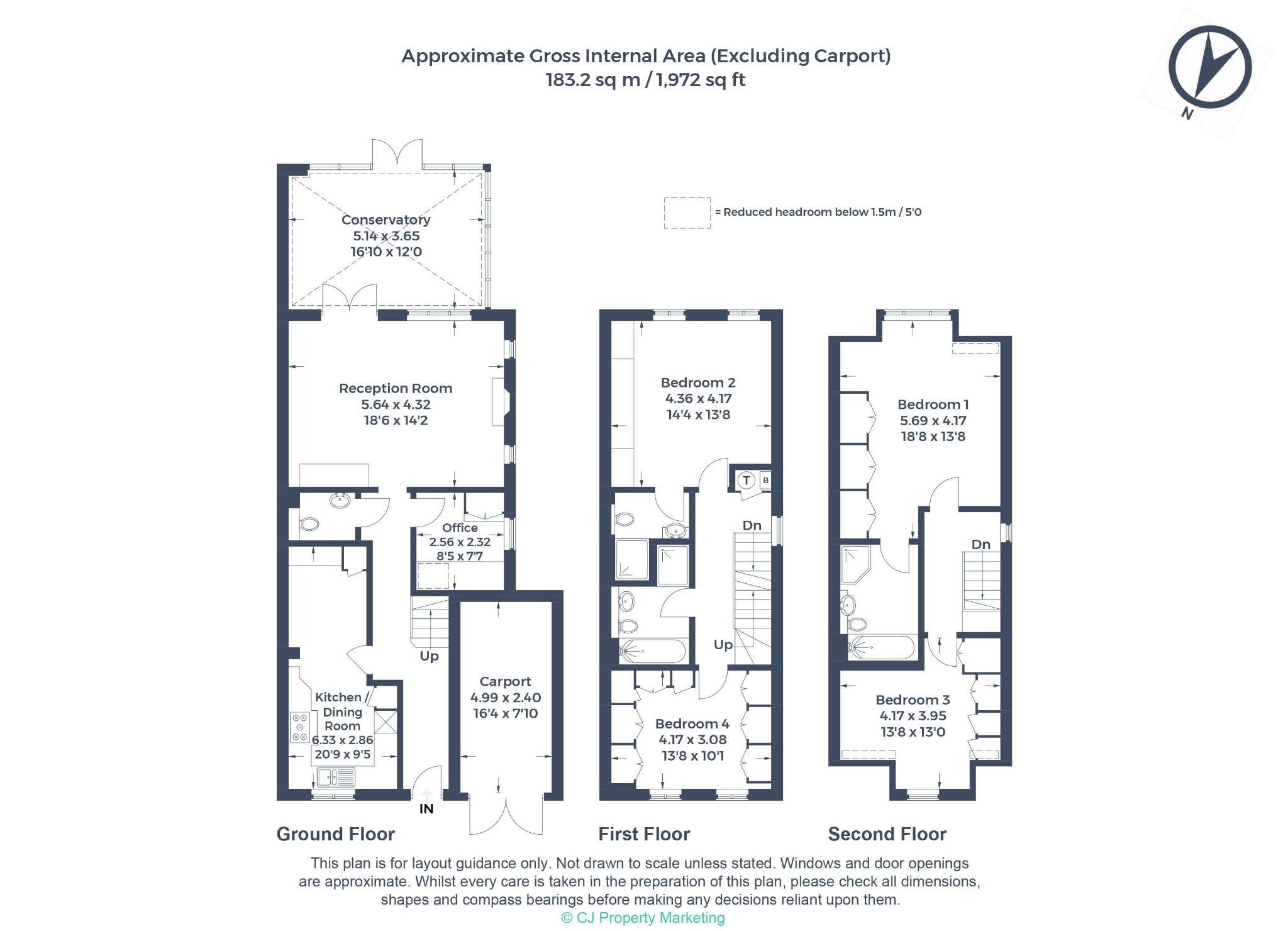 To the ground floor is a modern fitted kitchen/dining room, a generously sized living room which flows seamlessly into a bright conservatory, with doors opening onto the rear garden, an office/study and a convenient downstairs w/c.Upstairs, the first floor offers two well-proportioned bedrooms, including a spacious main bedroom with en-suite shower room, along with a contemporary family bathroom. The second floor features two further bedrooms, one of which also benefits from its own en-suite bathroom.Outside, the property enjoys a low-maintenance rear garden, perfect for relaxing or entertaining, while to the front there is a private driveway and a carport, providing ample off-street parking.