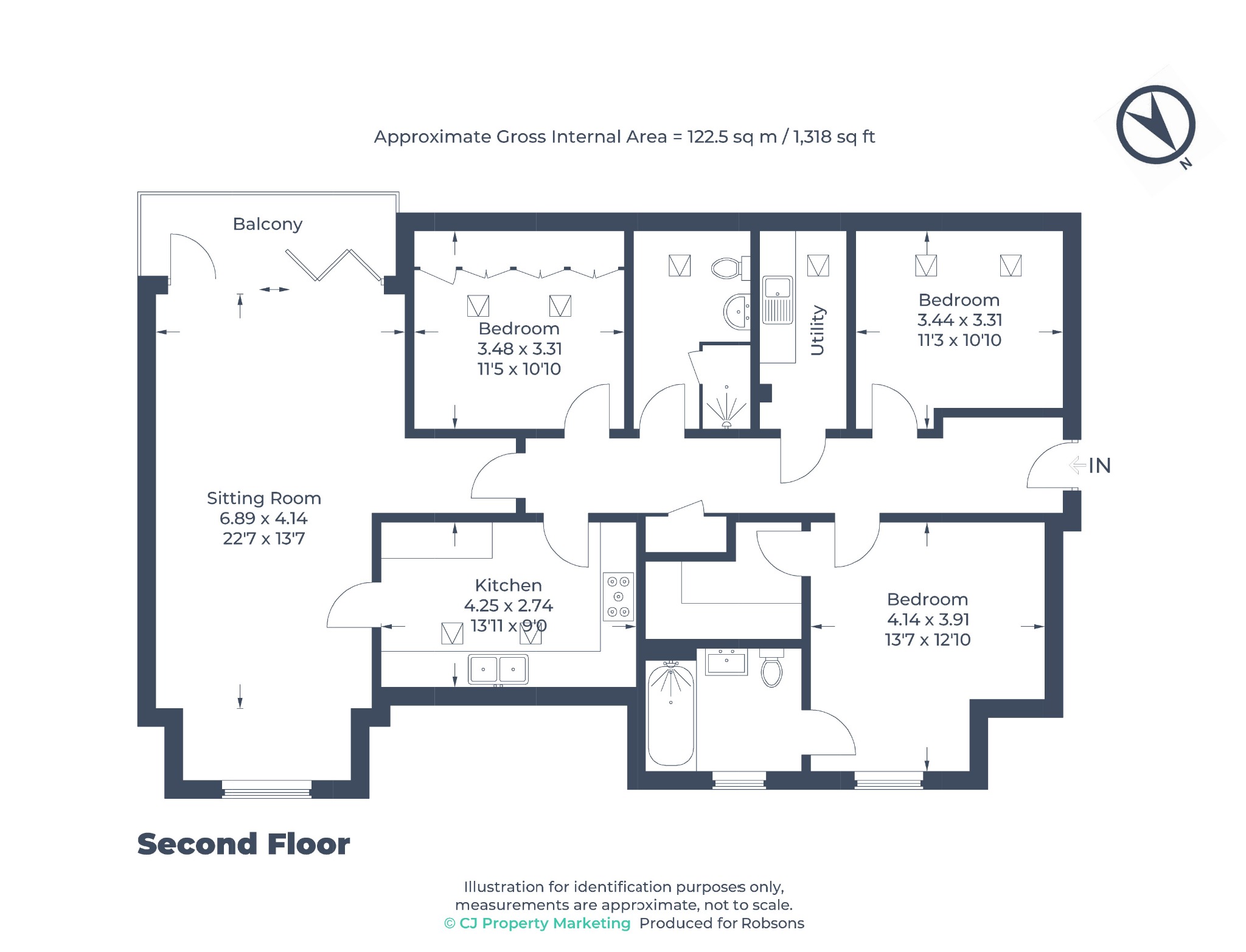 The apartment features a generous open-plan living and dining area leading out to a private balcony, a sleek, high-specification kitchen fitted with premium appliances, a separate utility room for added practicality, three well-proportioned bedrooms, including the main suite complete with a walk-in wardrobe and a stylish ensuite bathroom. A contemporary family bathroom serves the remaining bedrooms.