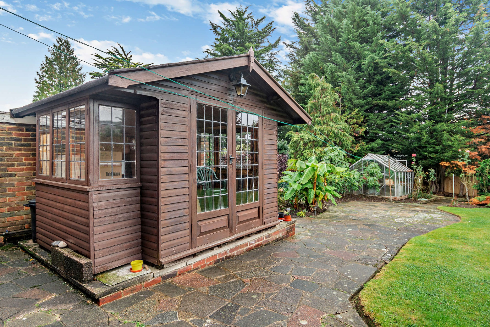 Externally, this property features an attractive rear garden that is part lawn and part patio, with mature hedges and trees. There is also a glass house to the rear and a summerhouse. To the front of the property there is a sizeable driveway allowing off-street parking and two garages.