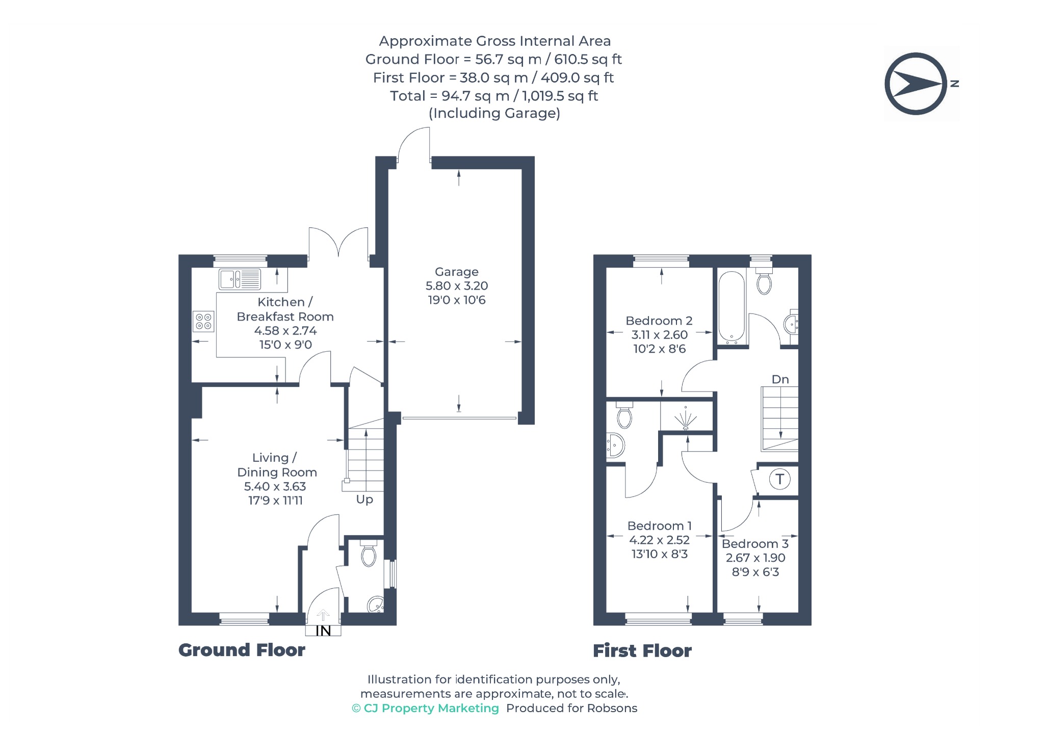 On the first floor, the principal bedroom benefits from its own en-suite shower room. There are also two further bedrooms and a modern family bathroom.