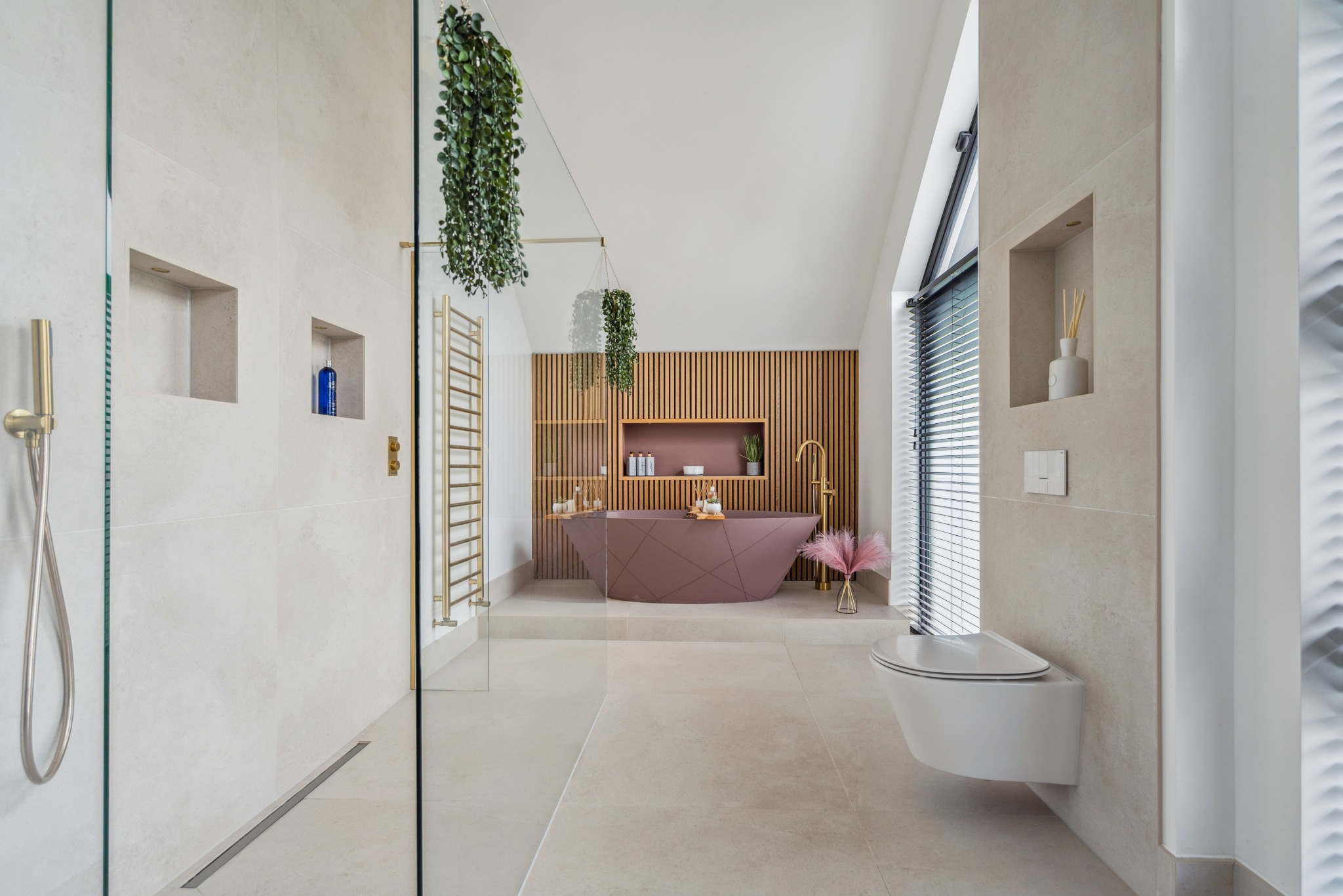 This exceptional five bedroom, four bathroom detached family home seamlessly combines modern luxury, cutting-edge technology, and energy-efficient design across 6,000 sq ft of cleverly conceived living space. You are welcomed into a grand vaulted entrance hallway, complete with a guest WC and large cloakroom, setting an elegant tone for the home. From here, the heart of the property unfolds: a kitchen/dining/family room with full-width sliding doors that bring the outdoors in. The bespoke, hand-crafted kitchen is a masterpiece, featuring sleek fitted units, Dekton worktops, a double oven, wine fridge, and a substantial kitchen island with breakfast bar, perfect for family living and entertaining. The ground floor also offers a light-filled sitting room, games room, office, and a utility/plant room, providing versatile and practical spaces for modern family life.