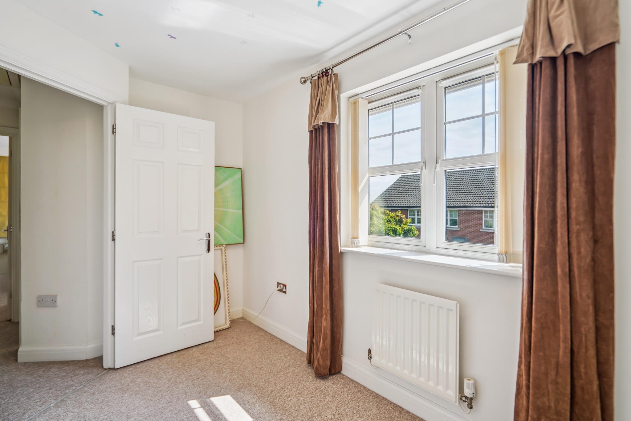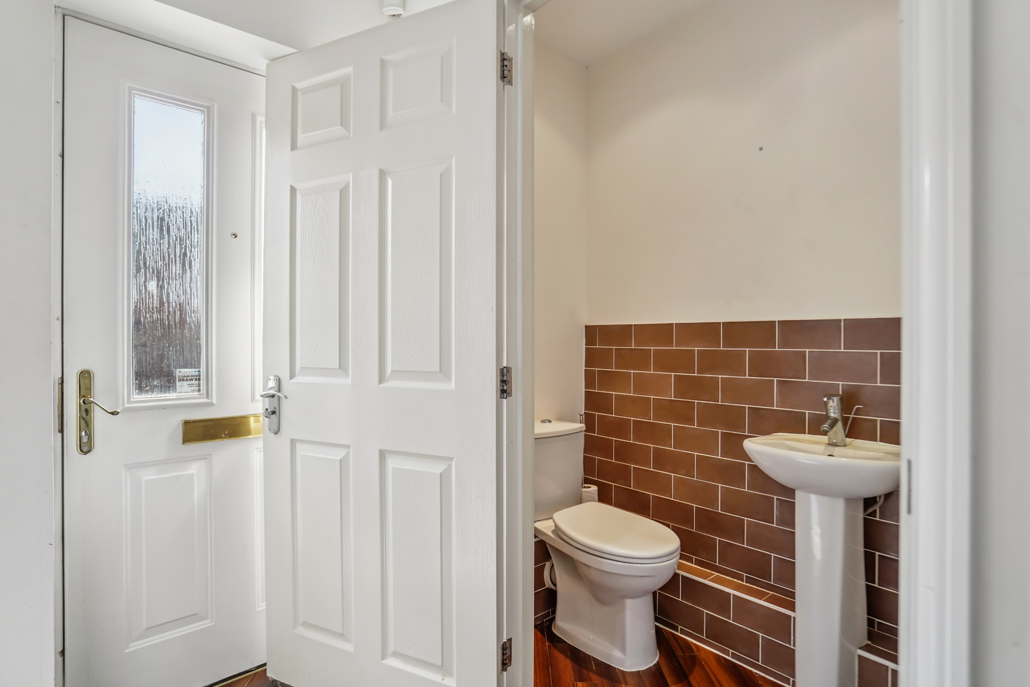 The property has a private rear garden that is laid to lawn, with a driveway to the side of the property, providing off-street parking.