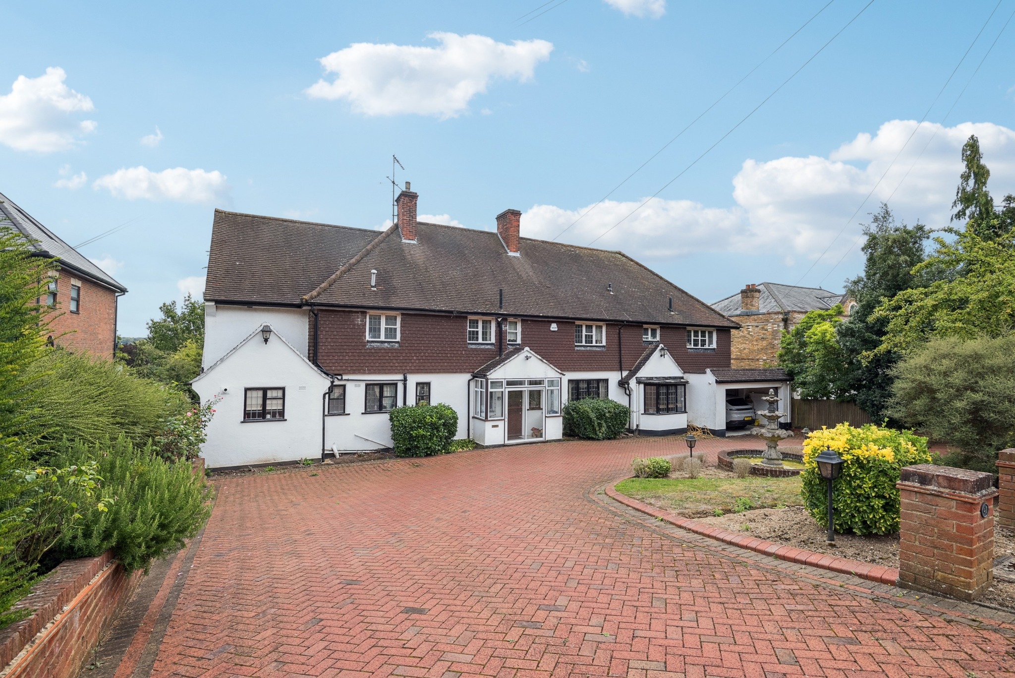 To the front of the property is a large carriage driveway with a double garage/car port and to the rear is a well-maintained rear garden with a raised patio area ideal for outside entertaining.