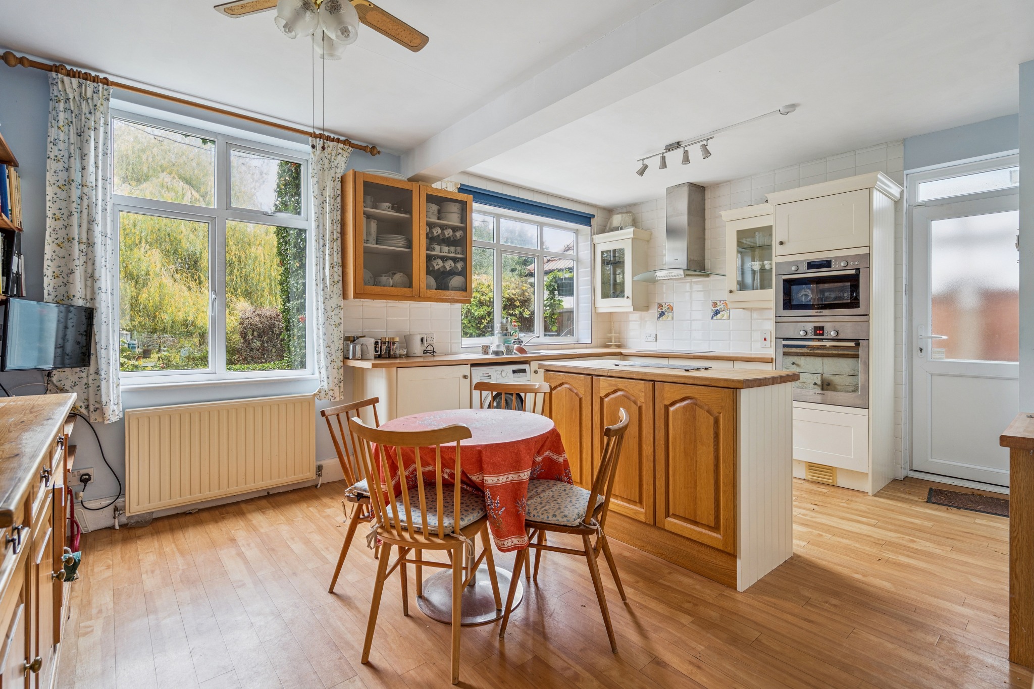 The kitchen/breakfast room offers a good range of fitted units, space for freestanding appliances, a central island, and room for a breakfast table and chairs. There is also a door providing access to the garden and another leading directly into the integral garage.