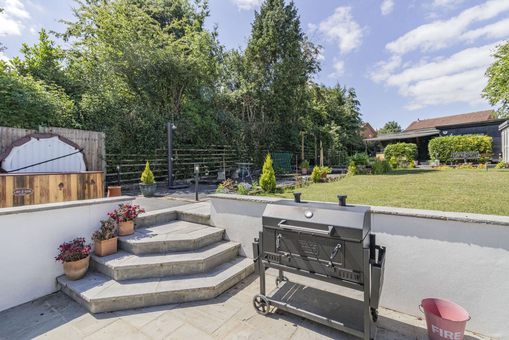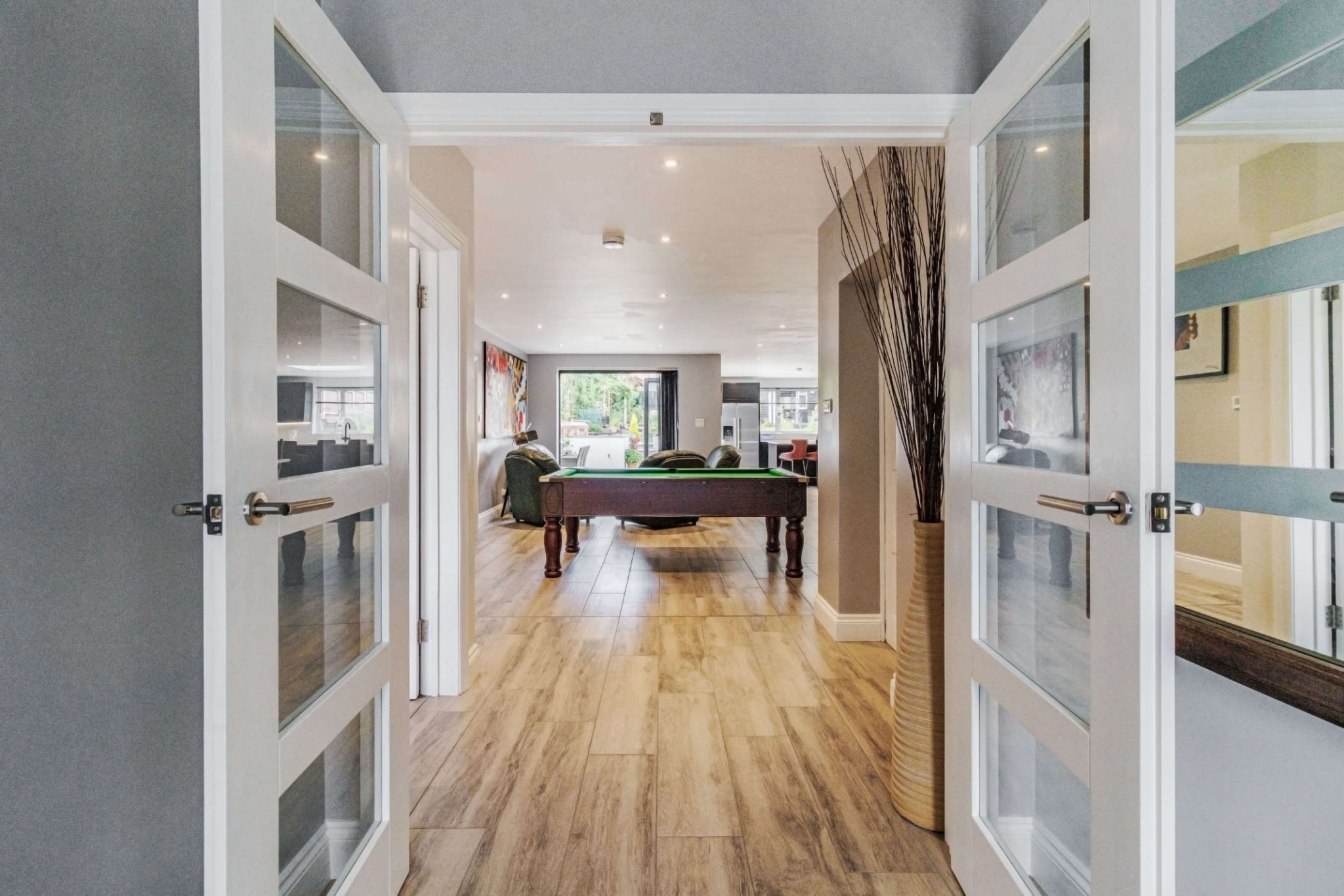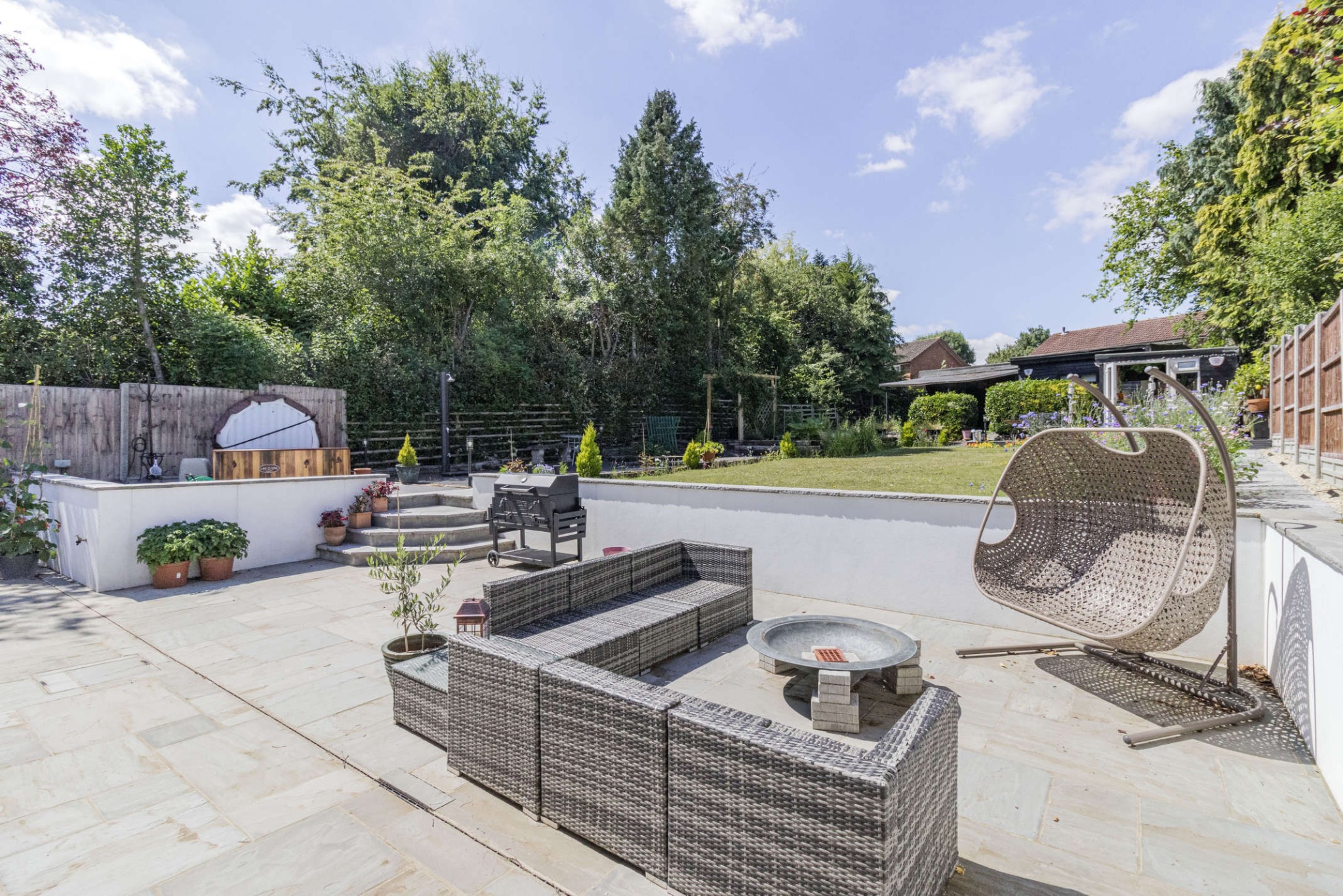 The property has a generous carriage driveway to the front. The attractive rear garden has a large area of lawn and a generously sized patio area, providing ample space for entertaining. There is also a garden room/office/gym which has a kitchen and shower room, together with a garden bar with patio doors opening up to the garden.