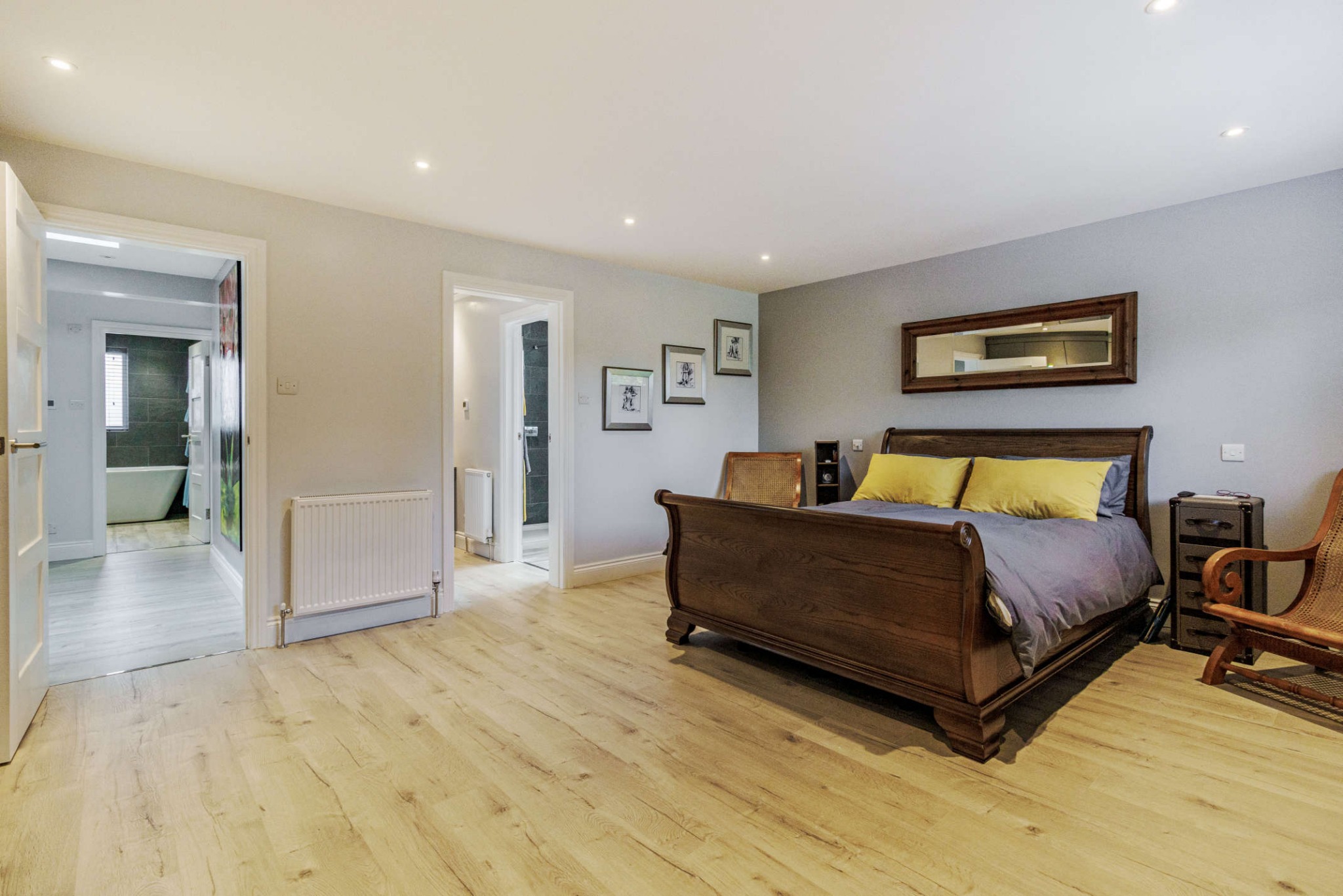 To the first floor is the spacious principal bedroom suite with a dressing room and modern shower room, the second bedroom with an en-suite, two additional bedrooms and the fully tiles family bathroom.