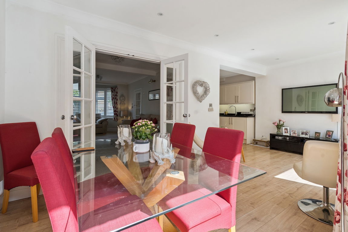 The ground floor comprises an entrance hallway, two large reception rooms, and an L-shaped kitchen/diner complete with modern units, integrated appliances and ample storage. The open-plan layout creates a great social space for families and entertaining, with the garden being accessible via two sets of french doors, perfect for the summer months.