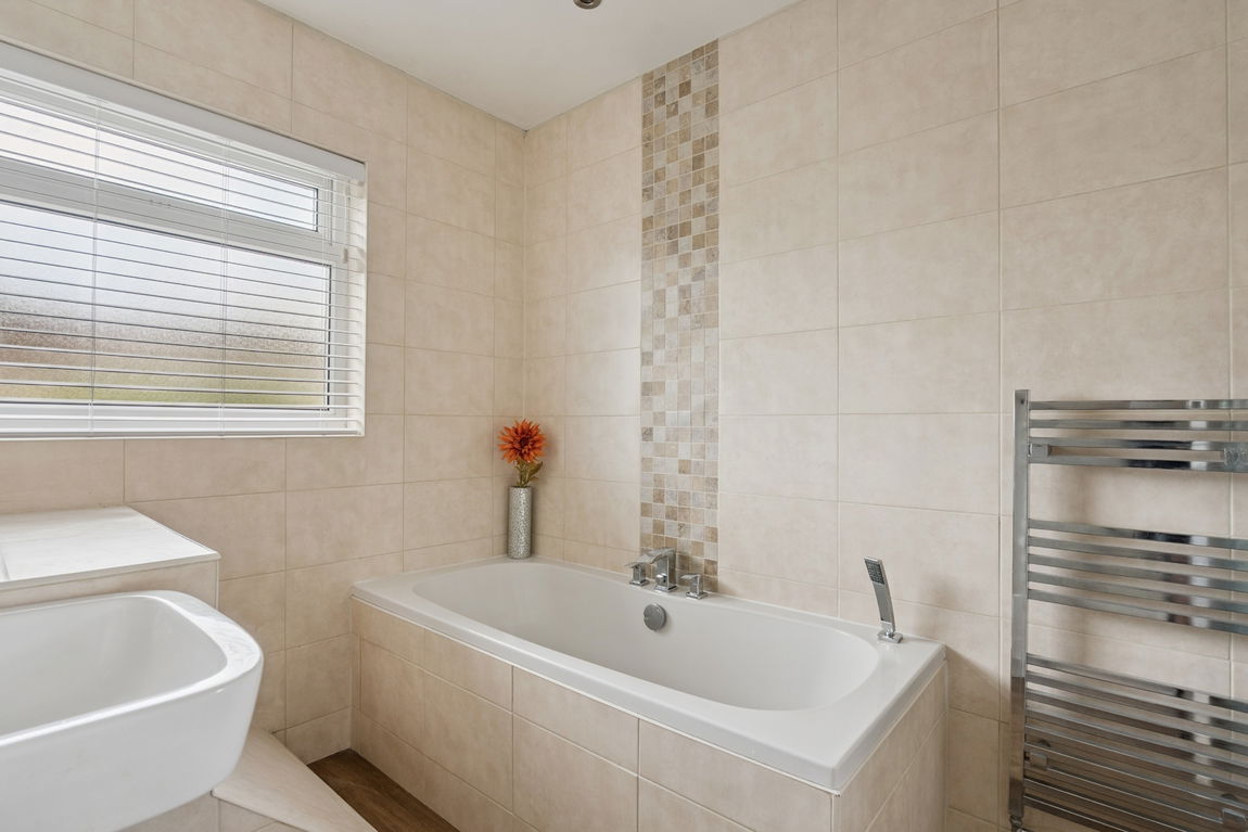 To the second floor you'll find two generous double bedrooms, both with fitted wardrobes, a further bedroom, and a luxury family bathroom boasting both a tub and a walk-in shower.