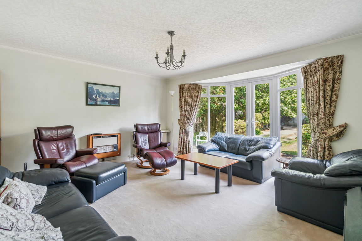 The ground floor welcomes you with a spacious porch leading into a bright and airy hallway, complete with a guest cloakroom and access to the integral garage. To the front, a charming dining room features a large bay window, while the rear of the property boasts a generous, light-filled living space with French doors that open directly onto the garden, ideal for indoor-outdoor living. The well-appointed kitchen includes an array of fitted units, integrated appliances, a breakfast bar, and side access to the garden.