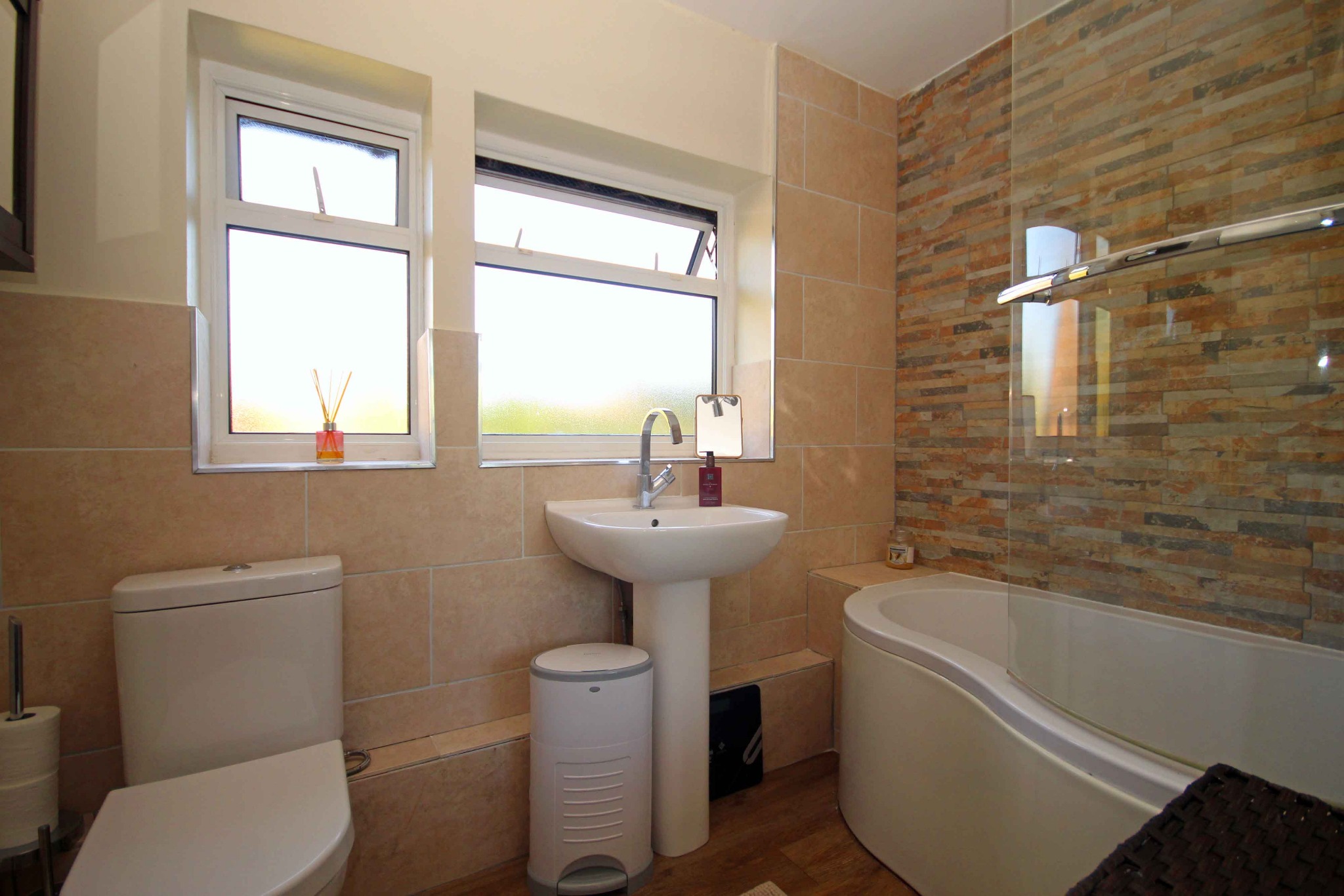 The property comprises an entrance porch with stairs leading to the first floor. There is a spacious landing with two useful storage cupboards, a stunning living room with a curved bay window and a feature fireplace, two generous double bedrooms with built-in storage space, and a luxury family bathroom. Completing the property is a modern eat-in kitchen offering a range of fitted units with an integrated oven, and space for a small dining table and chairs. The property also has access to ample loft space, perfect for storage.