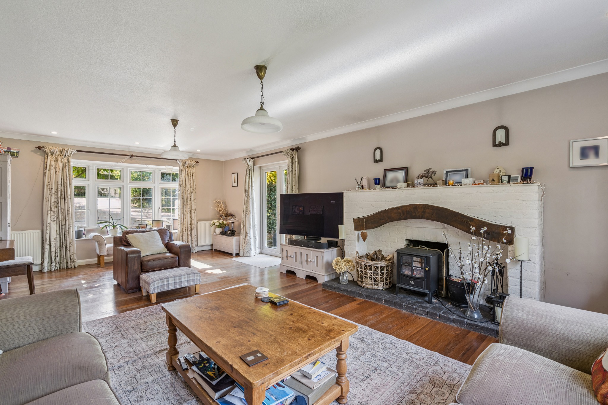 Set within the peaceful and picturesque village of Ballinger, Woodland House is an impressive, detached family home occupying a generous 0.43-acre plot on a private no-through road. Nestled in the heart of the beautiful Chiltern Hills, the property features striking frontage with a generous driveway. Beautifully presented by the current owners, the property offers spacious and versatile accommodation. A welcoming entrance porch leads into a generous hallway, giving access to a cloakroom and three well-proportioned reception rooms. These include a large, triple-aspect sitting room with an open fireplace, a stunning light-filled orangery with a cosy log-burning stove, and a separate study. The traditionally styled kitchen/breakfast room opens onto a raised patio, ideal for outdoor dining and entertaining. A practical utility room completes the ground floor. Upstairs, there is a part galleried landing, four double bedrooms, three of which feature built-in wardrobes, and two well-appointed bathrooms, including an en-suite to the principal bedroom. The gardens are attractively landscaped with a generous lawn, mature planted borders, and direct access into ancient woodland beyond. Split-level seating areas, including a raised terrace which adjoins the rear of the property, provide perfect spaces to relax and enjoy the surroundings.