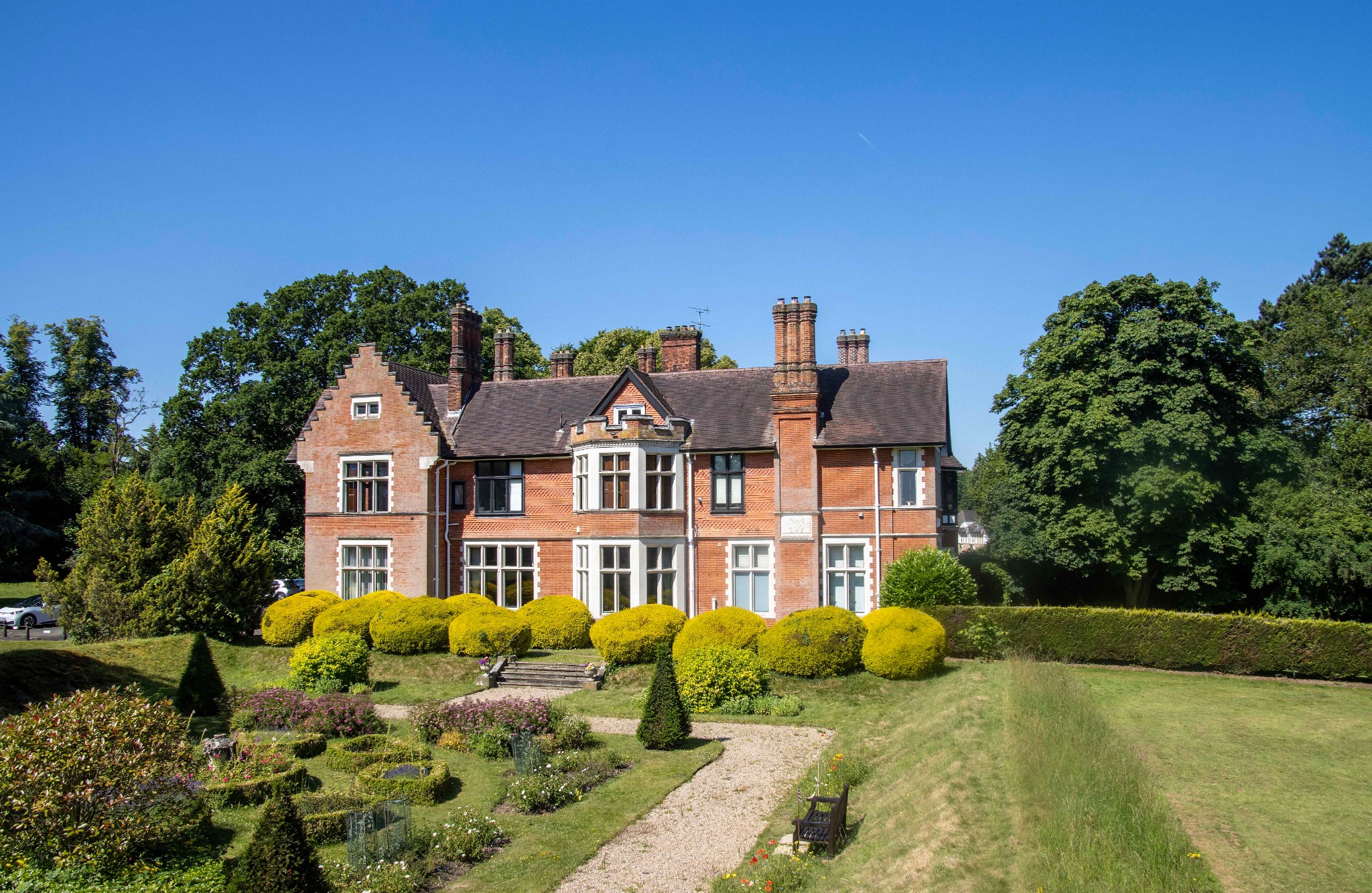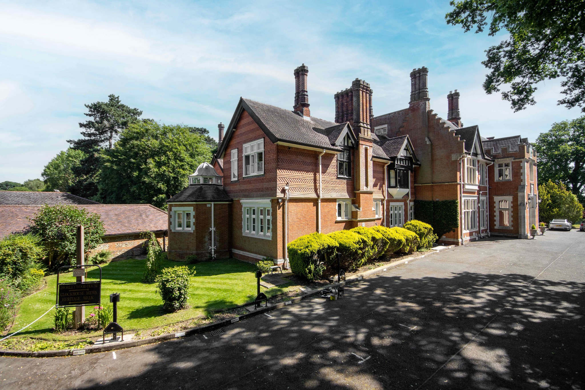 Externally, this lovely apartment is surrounded by stunning communal grounds and boasts private gardens, laid to lawn with tall hedges and shrubs that provide a level of privacy and a patio area to enjoy outside dining. To the front is a carriage driveway, with two allocated parking spaces, visitors spaces and an EV charge point.