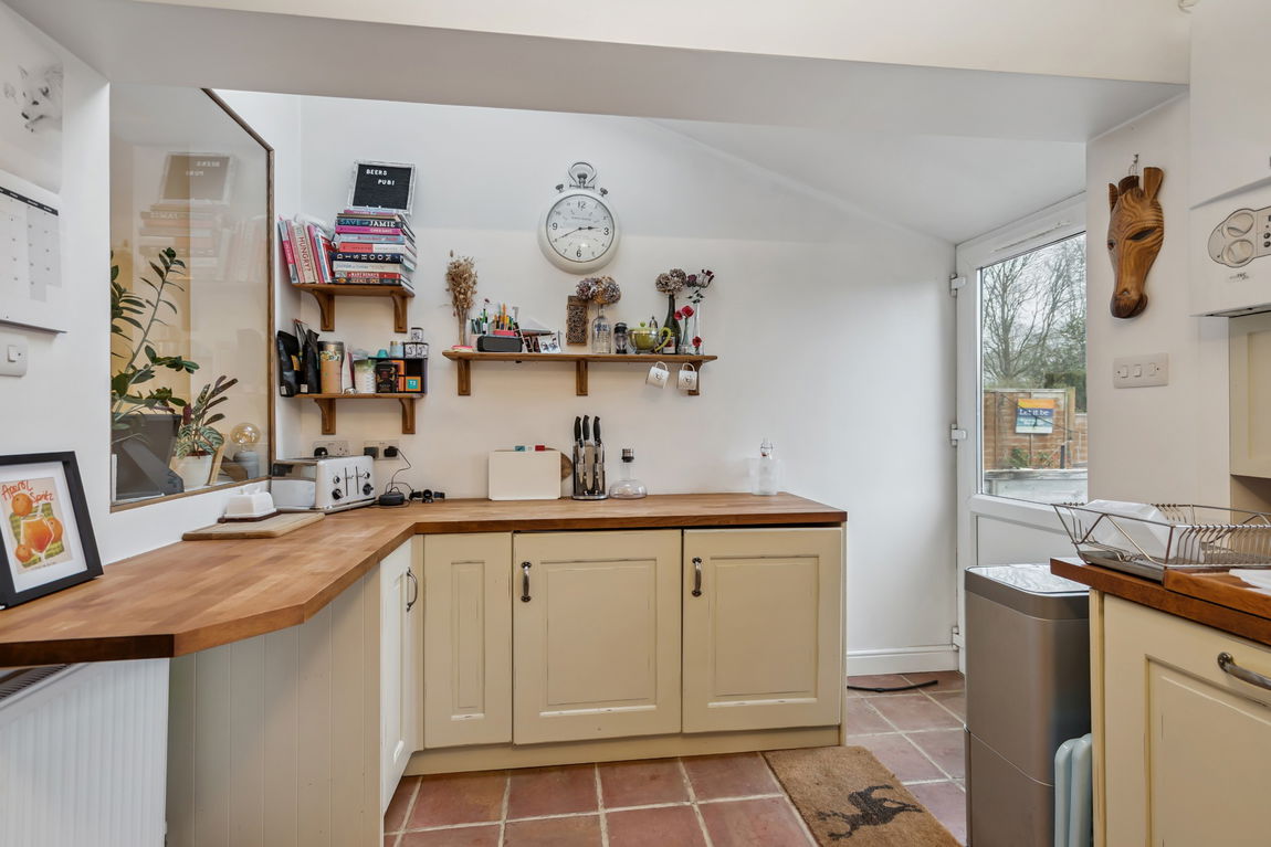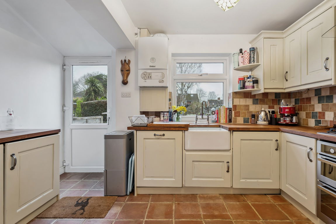 The kitchen is fitted with a good selection of modern units and integrated appliances, with a door opening out to the rear garden.