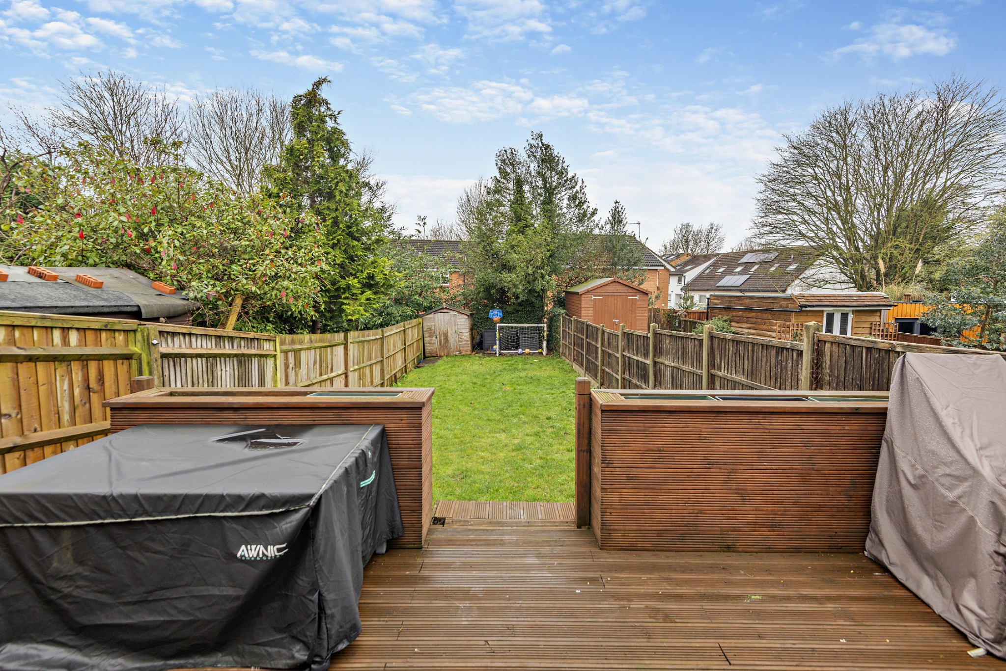 Externally, this family home offers a well-maintained rear garden that is laid to lawn with a raised decked area to enjoy outside dining and a garden shed.