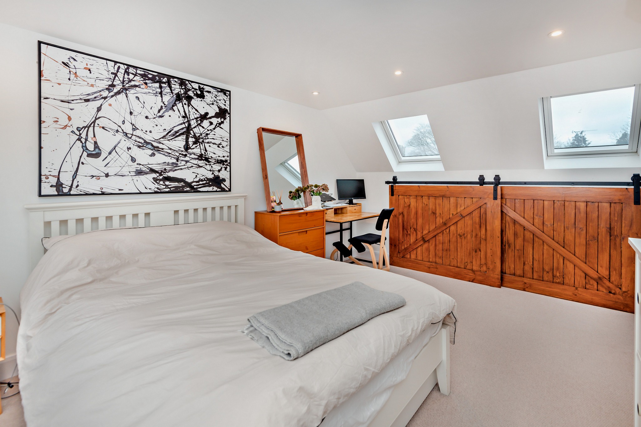 To the first floor there are three well-appointed bedrooms with two benefitting from fitted wardrobes and a fully tiled bathroom with a roll-top bath. The second floor boasts a principal bedroom with two skylights and a modern ensuite shower room.