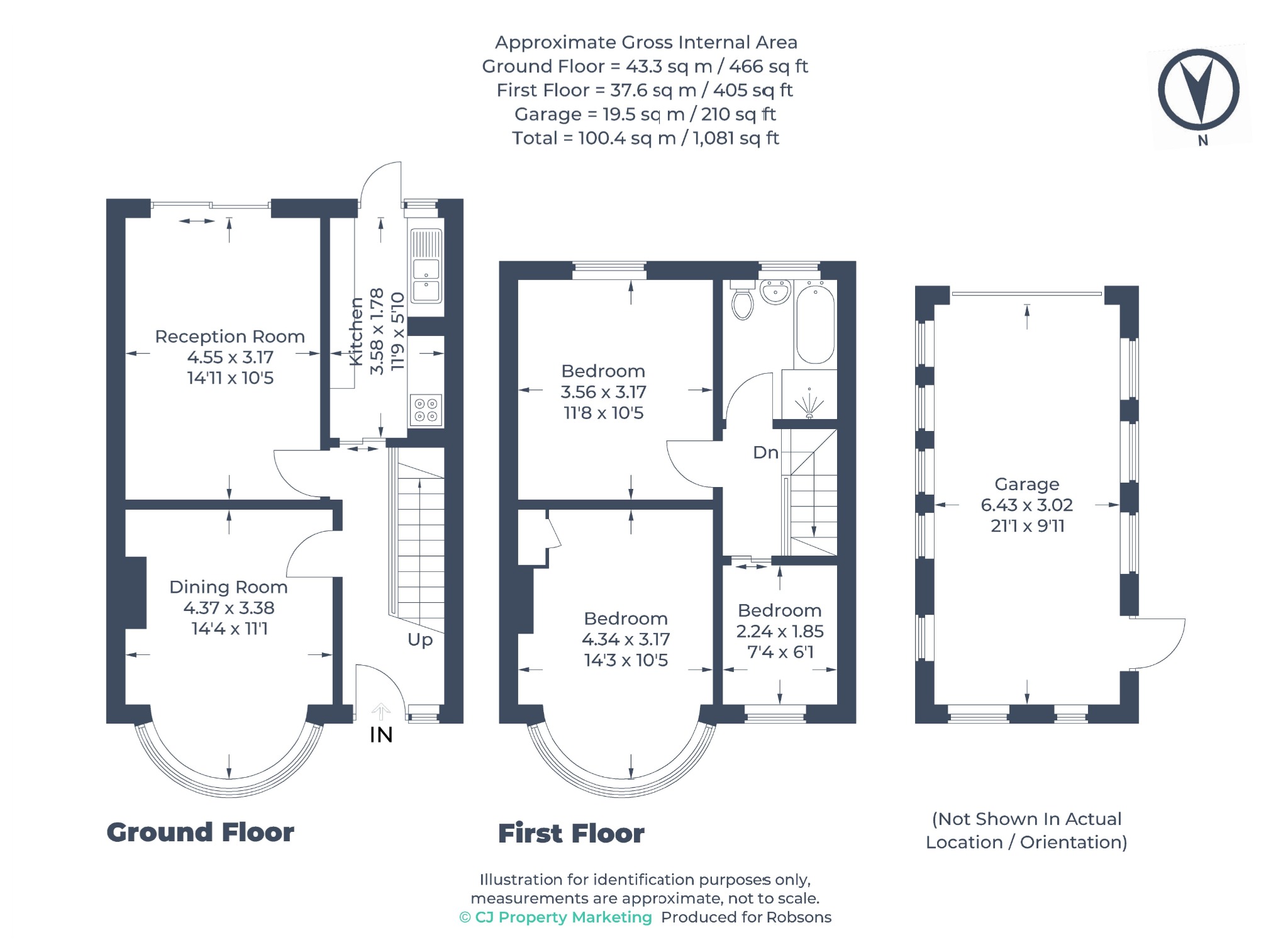 The ground floor features a large dining room to the front, kitchen, and a living room leading to the rear garden. To the rear is a south-facing rear garden which boasts a patio area ideal for outside entertaining. To the first floor are two good-sized double bedrooms, a third bedroom and a family bathroom.
