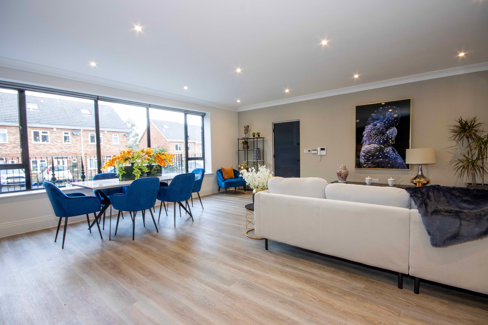 and dining areas are perfect for entertaining guests, while large windows allow natural