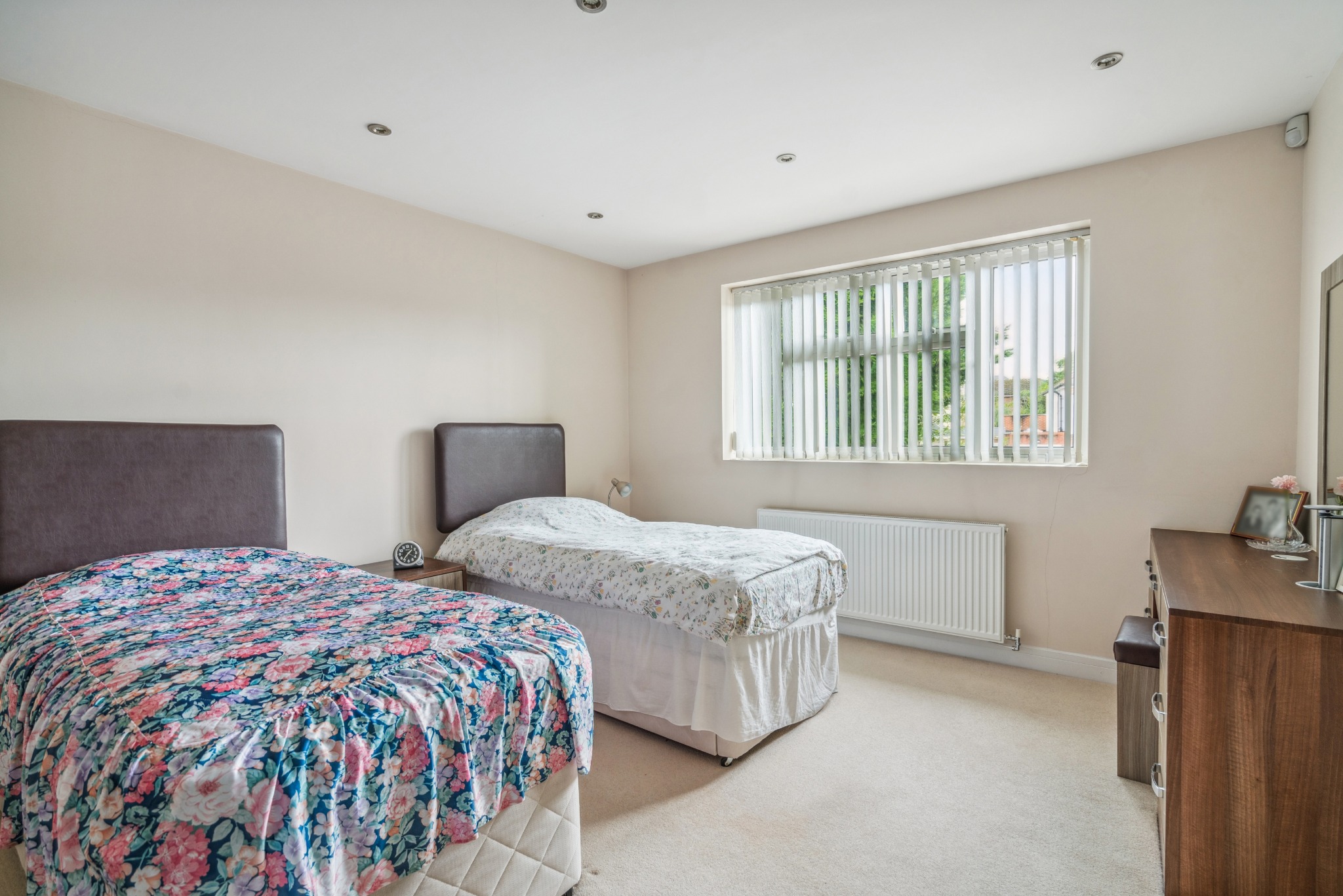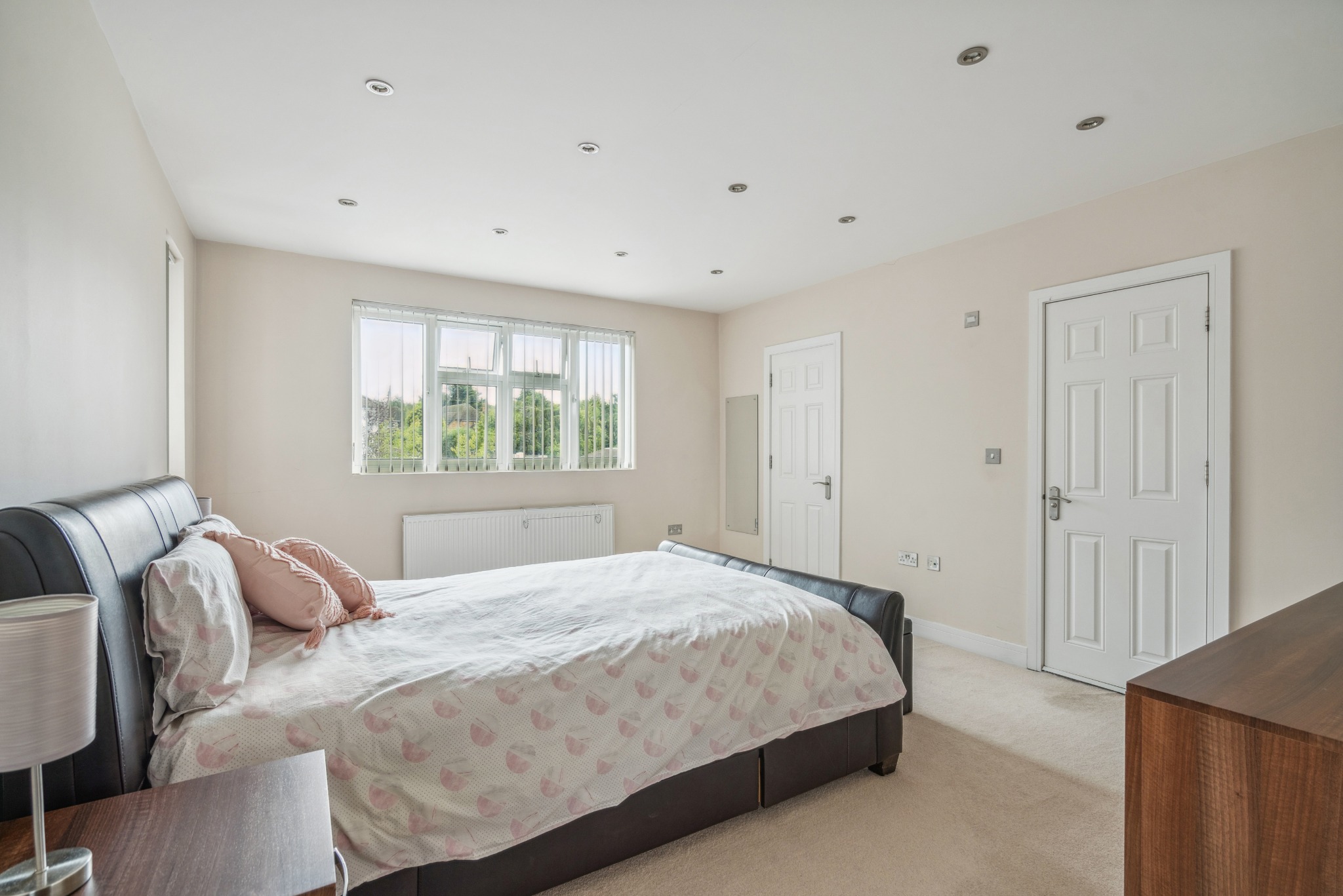 To the first floor, a spacious landing area gives access to a principal bedroom with a walk-in wardrobe and an ensuite shower room.