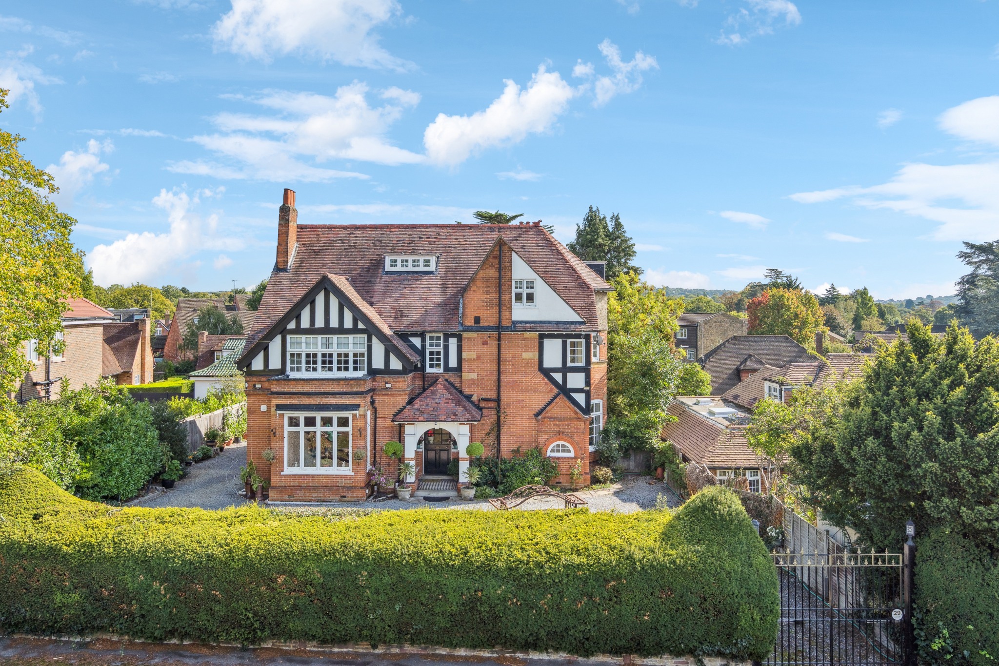 Sat on a commanding plot, the property is accessed via electric gates providing secure off-street parking for multiple vehicles and access to the double garage.