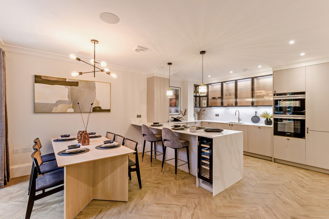 Apartment Five is situated on the first floor with two balconies with a southerly aspect. It has a beautiful contemporary kitchen with integrated appliances and a separate utility room, a large reception room, two bedrooms and two bespoke-designed bathrooms. The apartment benefits from two gated underground parking spaces and lift access to all floors, including basement parking area and storage room.