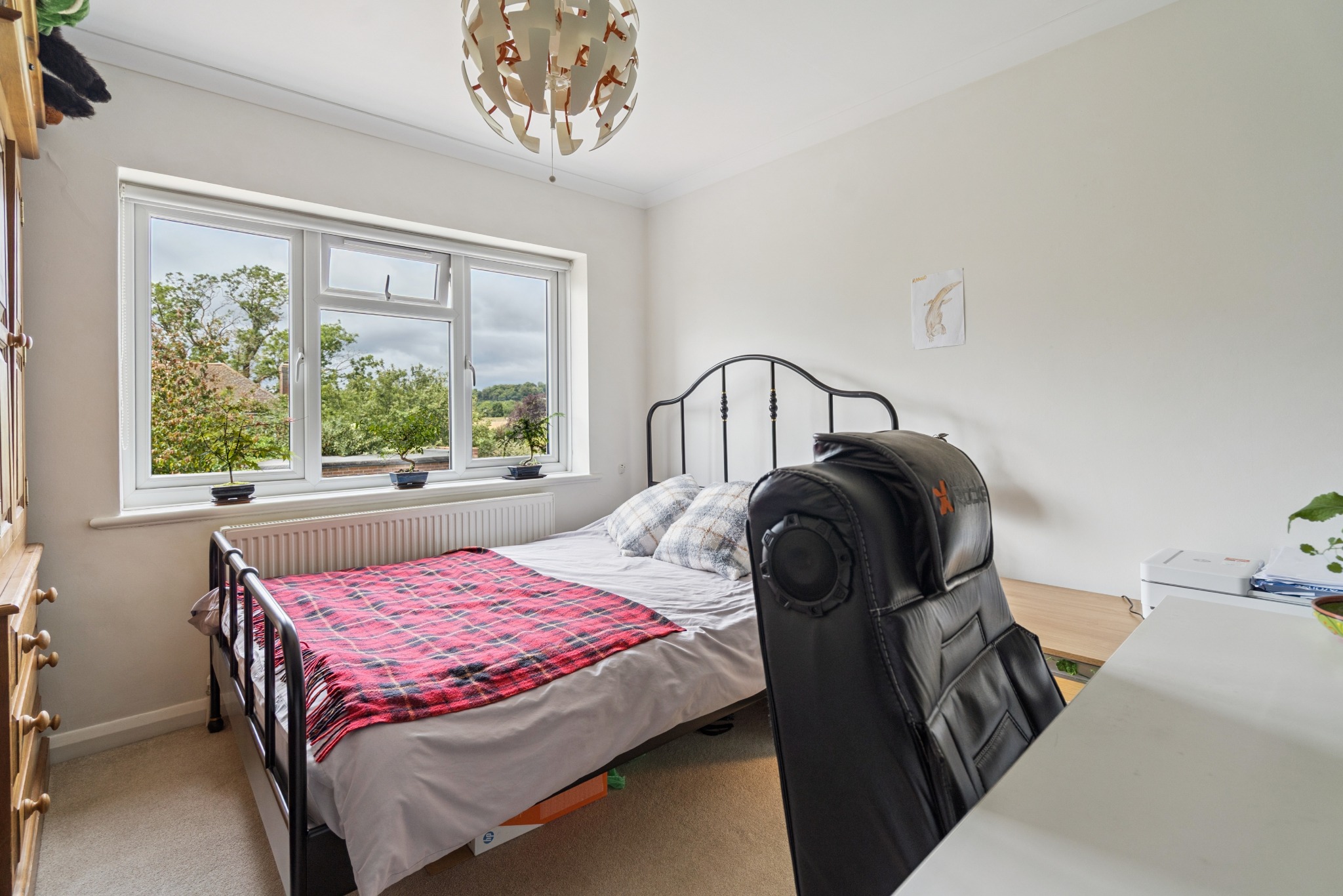 The attractive rear garden is laid to lawn with mature shrubs, flowerbeds, and a patio area ideal for outdoor dining. To the front, a private driveway provides off-street parking and leads to an integral garage.