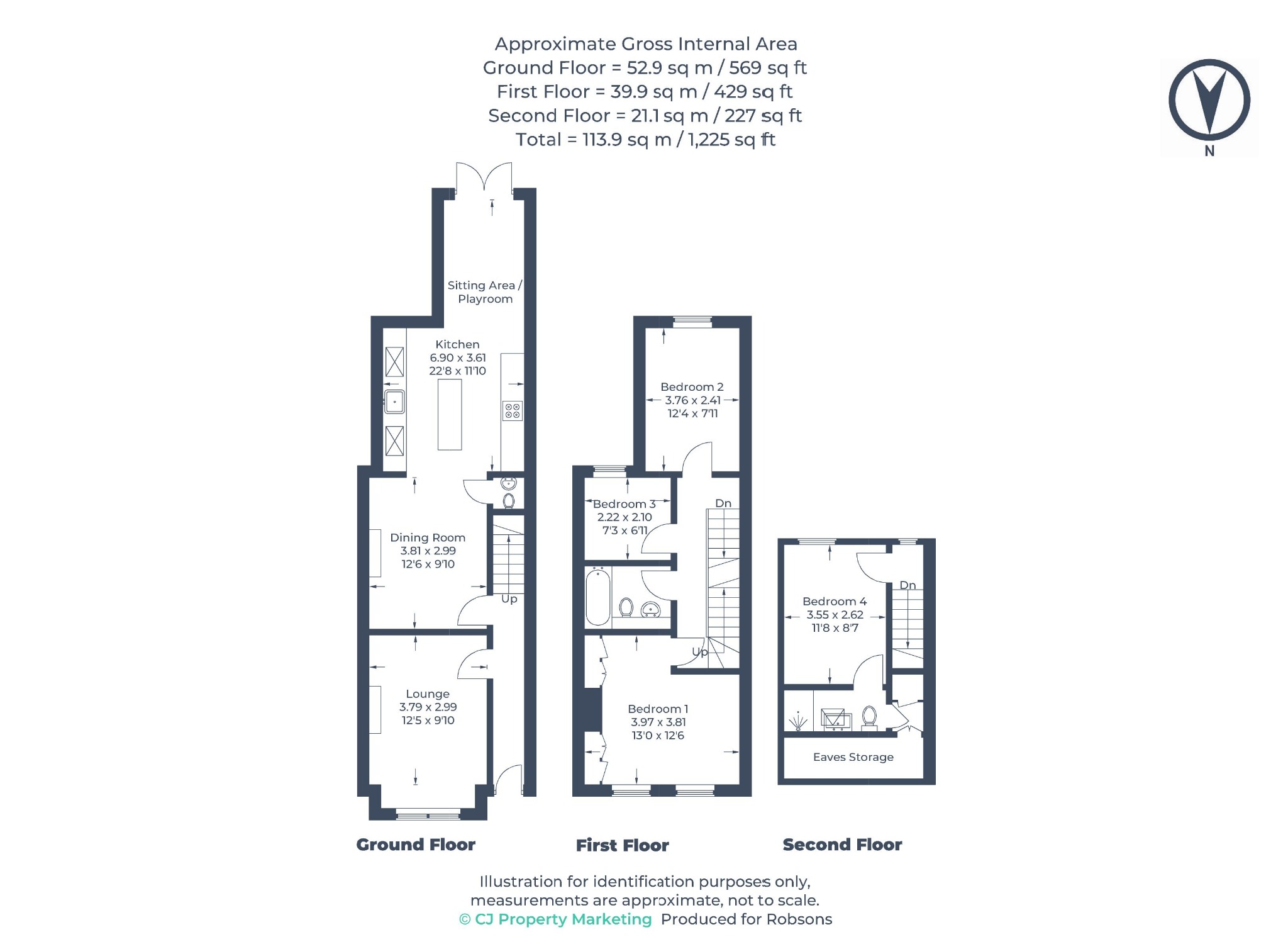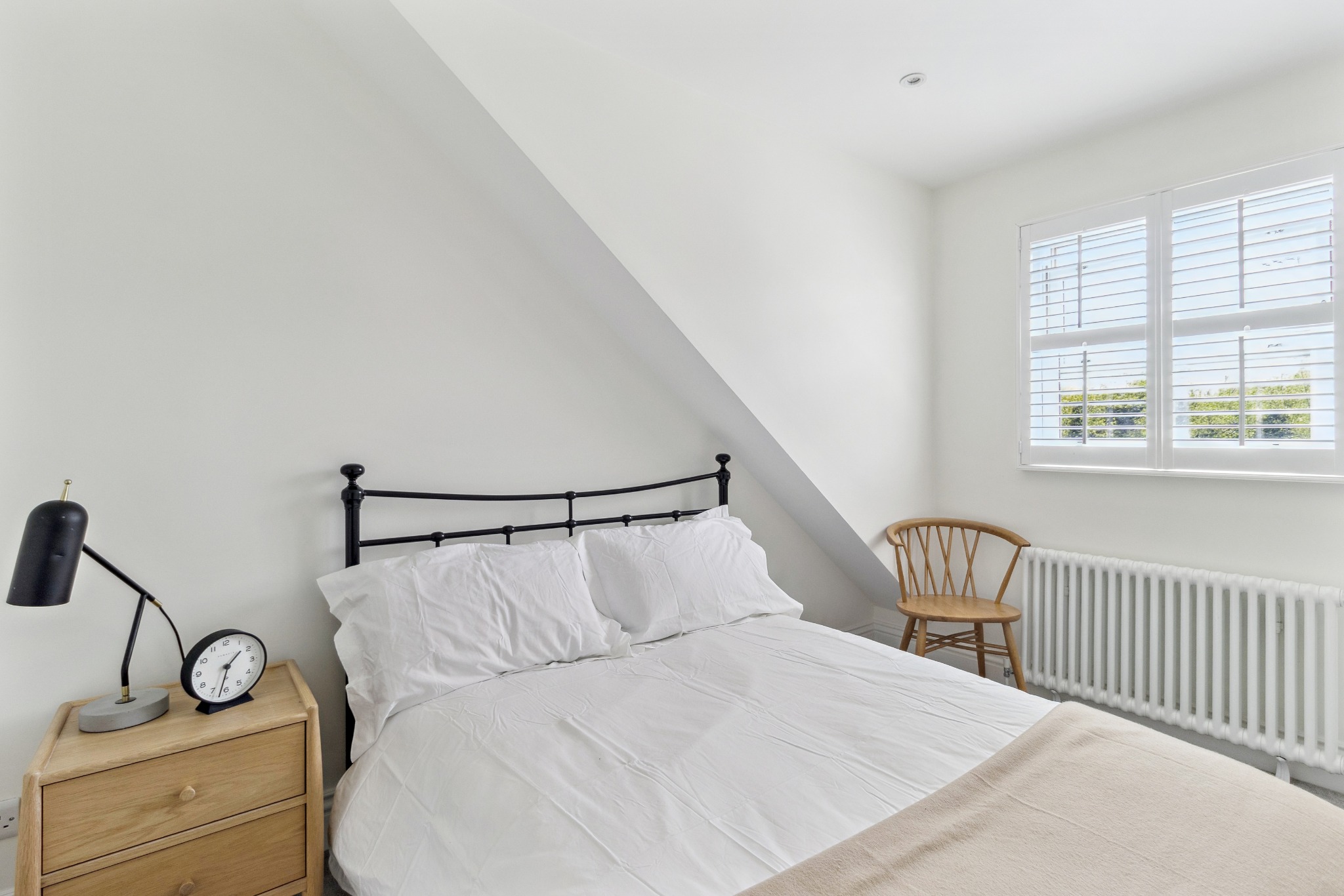 The first floor hosts a principal bedroom with fitted wardrobes, two further bedrooms and a stylish family bathroom. A fourth bedroom occupies the second floor, complete with an en-suite bathroom and convenient eaves' storage.