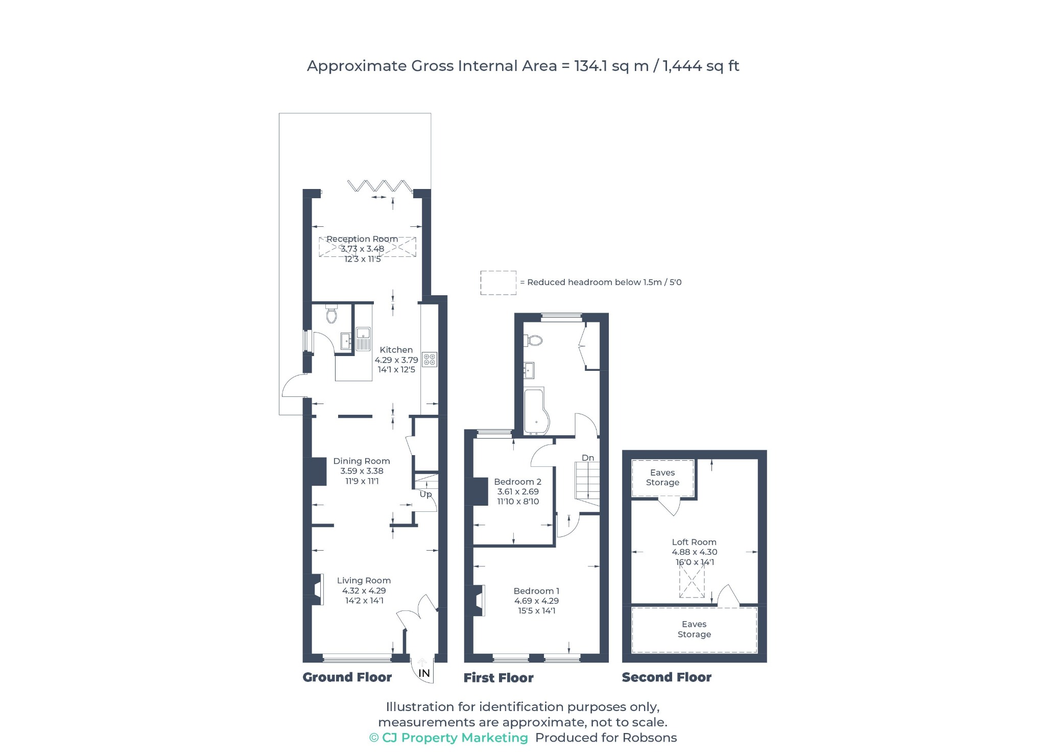 The second floor offers a loft room, accessed via a pull-down ladder, with a skylight and useful eaves storage, providing flexible space for a home office or hobby area.