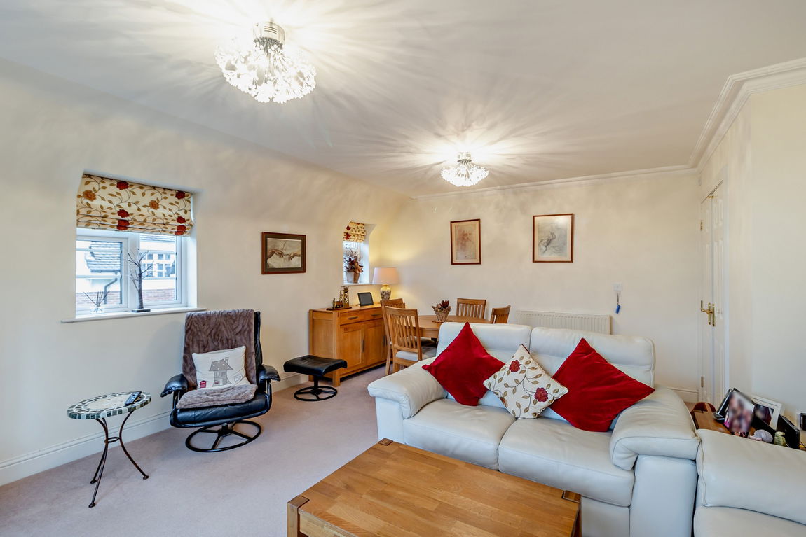 The apartment boasts enviable views from the oversized French doors in the living dining room which also has a raised ceiling being on the top floor. The property has the advantage of a lift to all floors and an allocated gated parking space. Further benefits include a share of the freehold with a long lease and no onward chain.