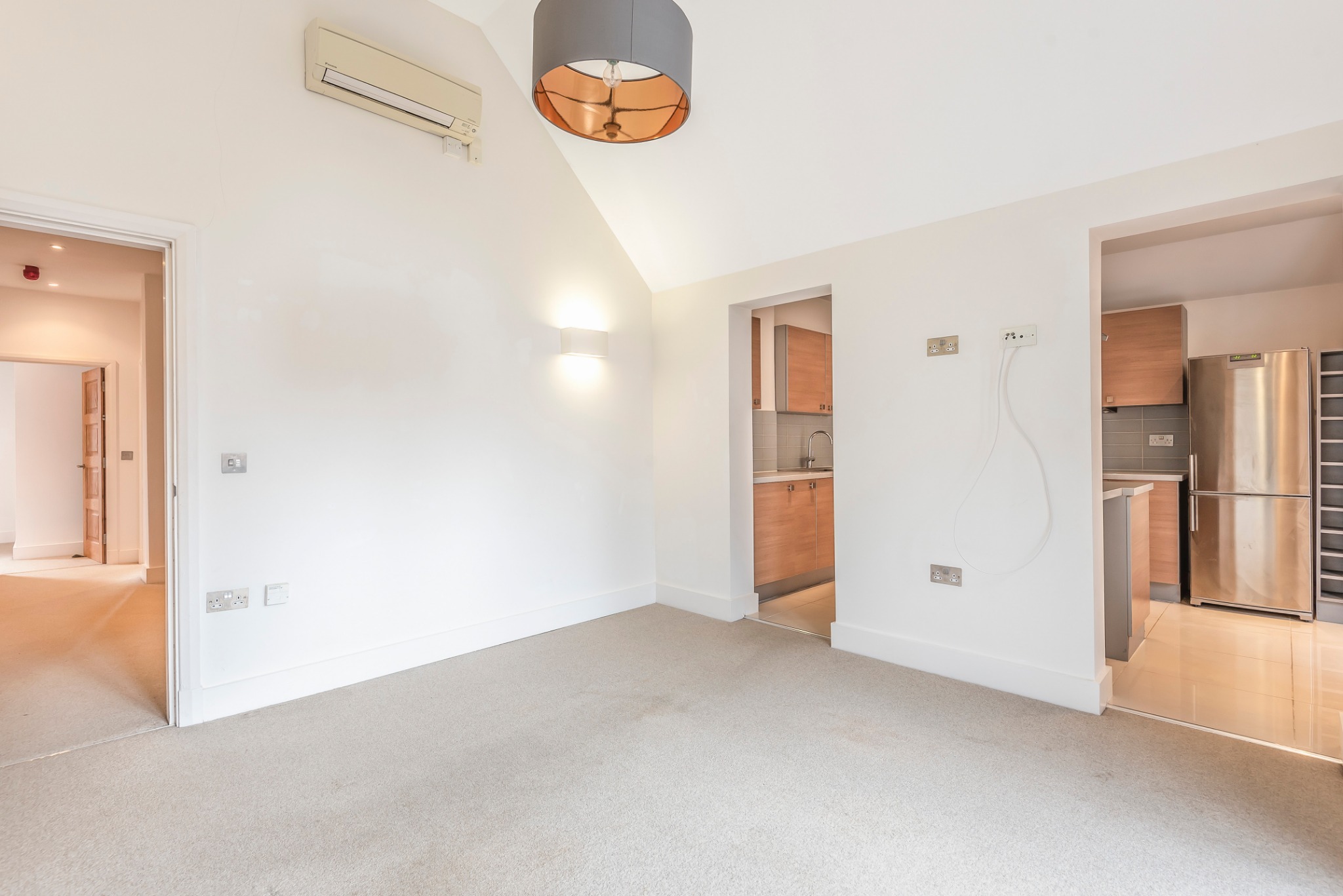 The apartment boasts two well-appointed bedrooms. The principal bedroom benefits from a fully tiled en-suite shower room, while the second bedroom is served by a contemporary main bathroom with modern fittings and under-sink storage.