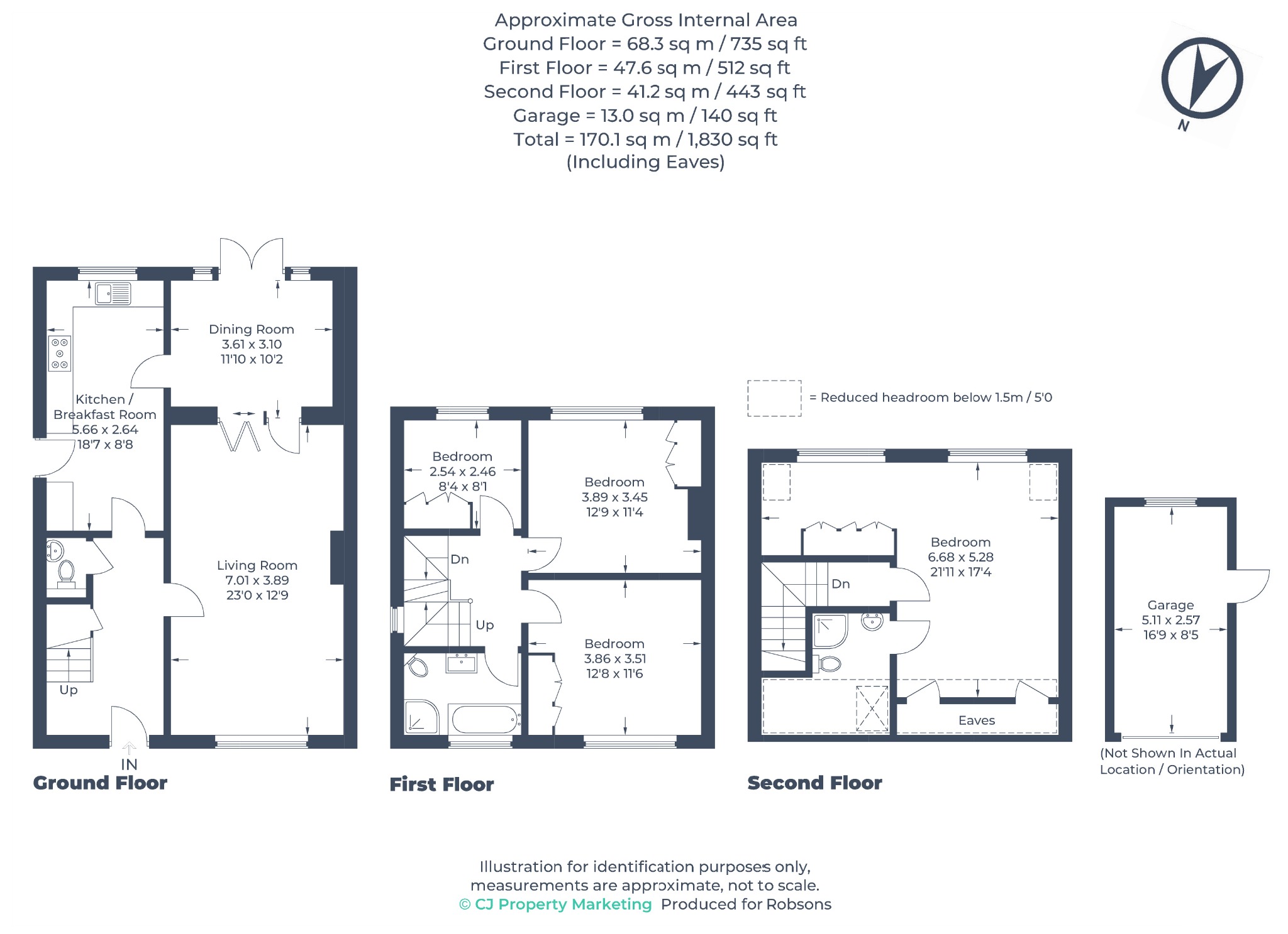 The ground floor comprises an entrance hallway with a guest WC, two adjoining reception rooms and a modern fitted kitchen. Three bedrooms are located on the first floor, along with a four-piece family bathroom, with the principal bedroom on the second floor complete with an en-suite shower room. All bedrooms are of good size and benefit from fitted wardrobes,