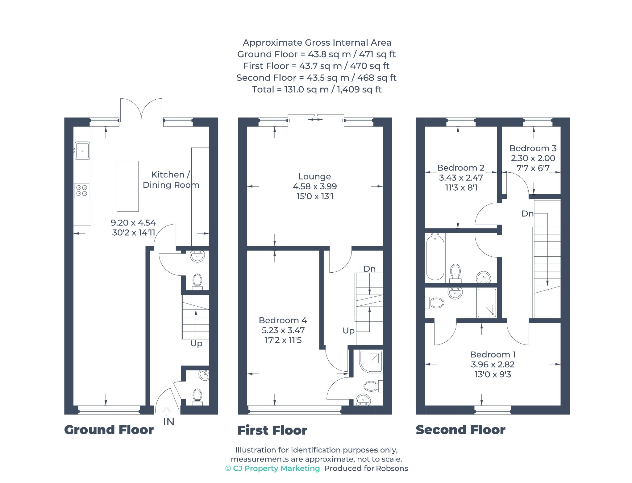 The second floor hosts the principal bedroom, also benefitting from its own en-suite shower room, two further well-proportioned bedrooms, and a contemporary, fully tiled family bathroom.