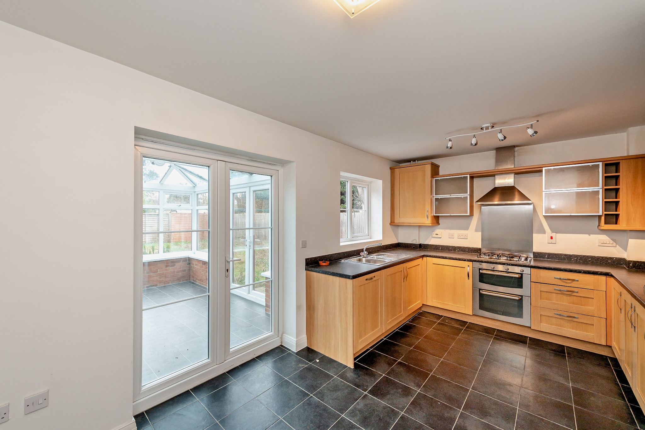 The ground floor comprises an entrance hallway with a guest WC. There is a front-aspect lounge with a feature fireplace and a spacious kitchen featuring a range of modern units with integrated appliances. Following on from the kitchen is a large conservatory with views of the garden.