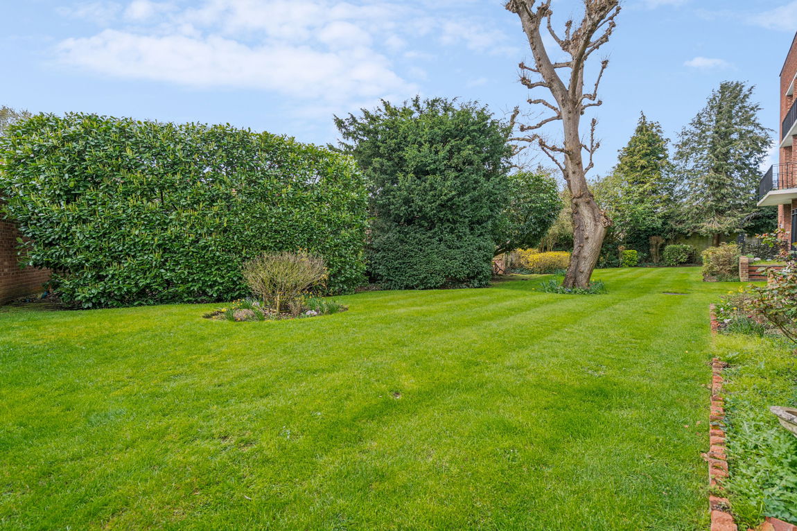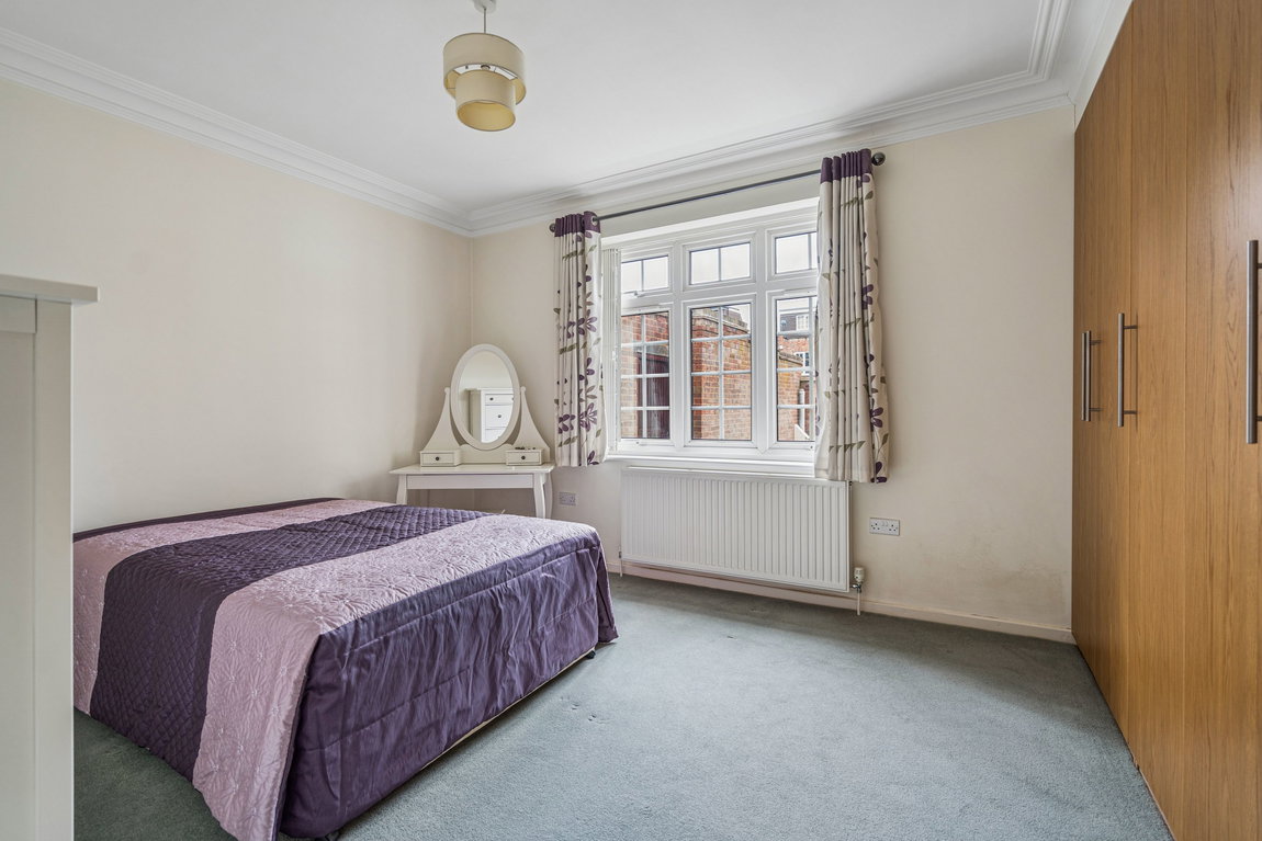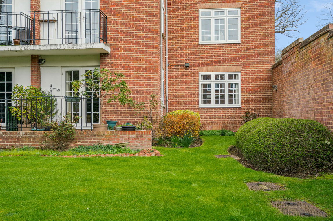 With high ceilings and ornate cornices to the main rooms its spacious ambience is apparent upon entering. The ample hall provides 2 large storage cupboards. Visitor access is via an entry-phone. The lounge/dining room is well proportioned and benefits from a feature fireplace. French doors lead to a small private terrace on the South West side of the building. This leads to the well maintained communal garden where the corner adjacent to the property can be used in virtual privacy. Both bedrooms are double size rooms and have fitted wardrobes.