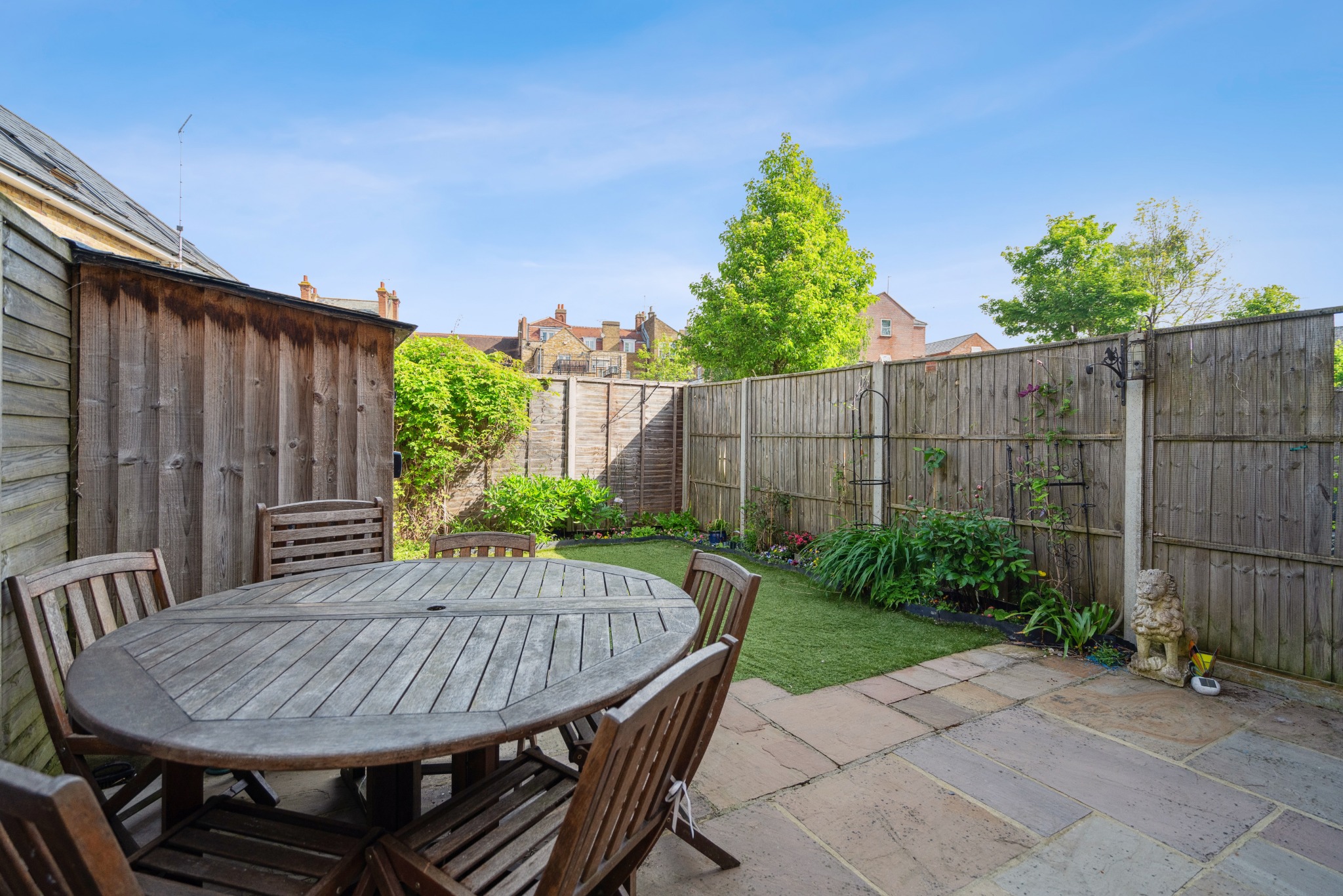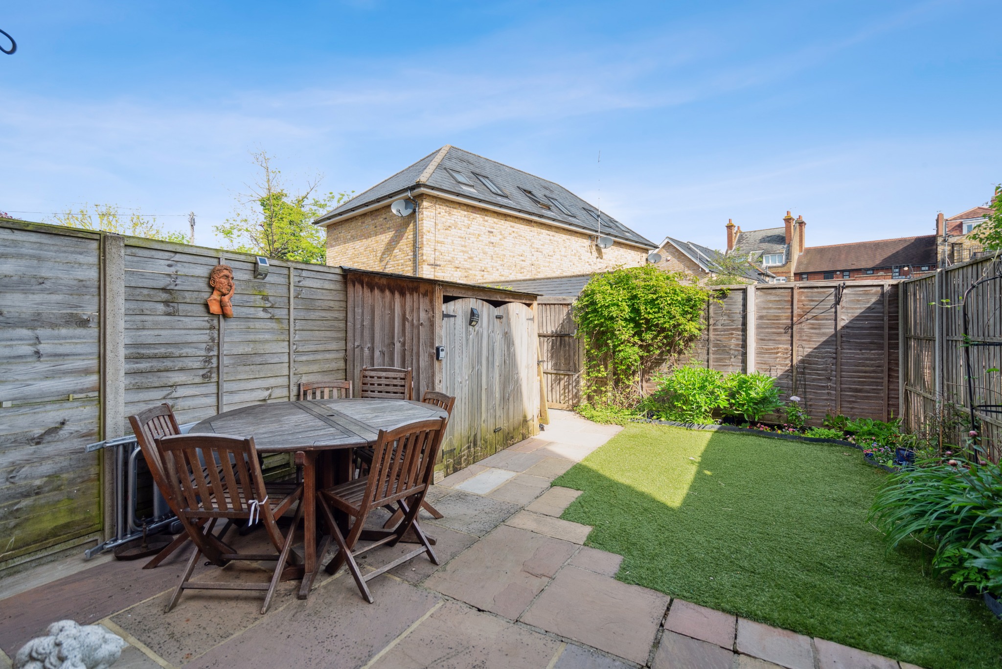 Externally, this lovely home offers a well-presented rear garden laid with easy to maintain Astroturf, flower borders, a patio area and rear access to the garden. The property also benefits from two gated parking spaces.