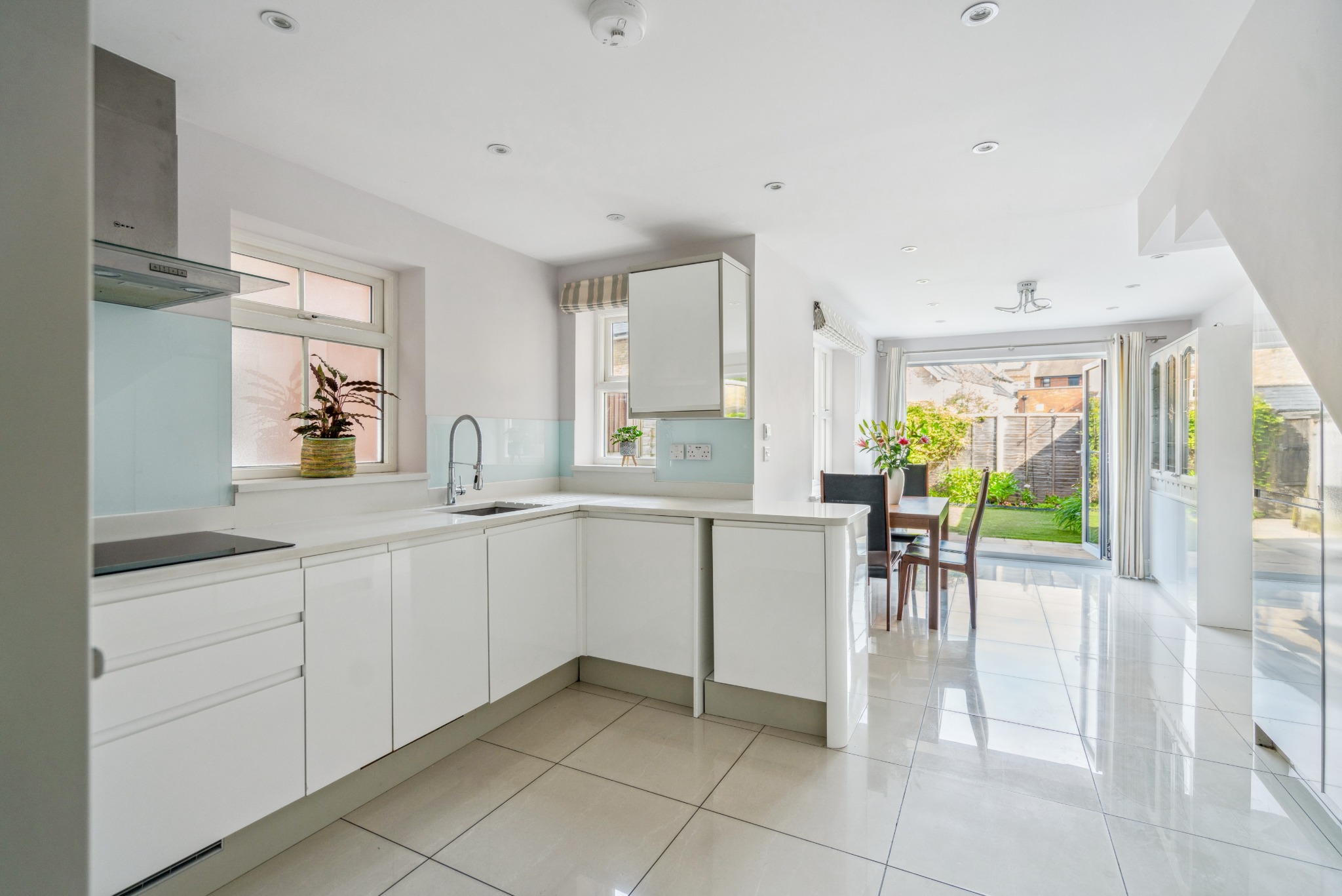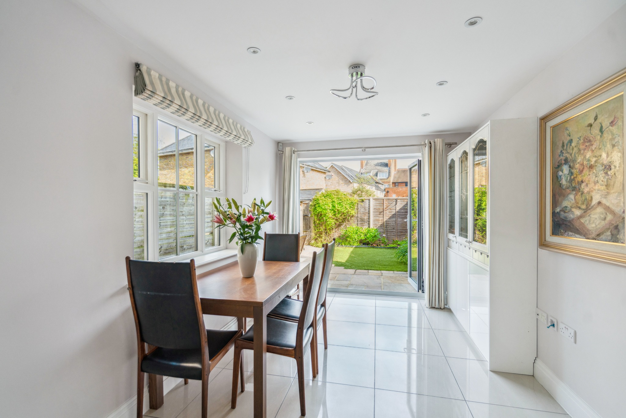 In addition, there is a dining area with aluminium bi fold doors opening out to the garden. The property also benefits from underfloor heating throughout.