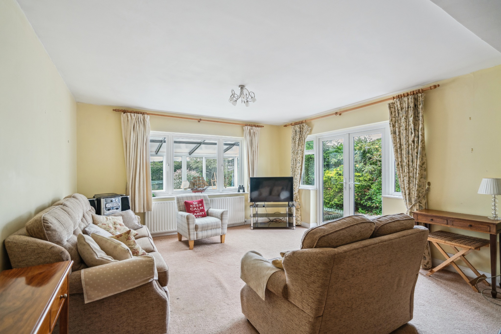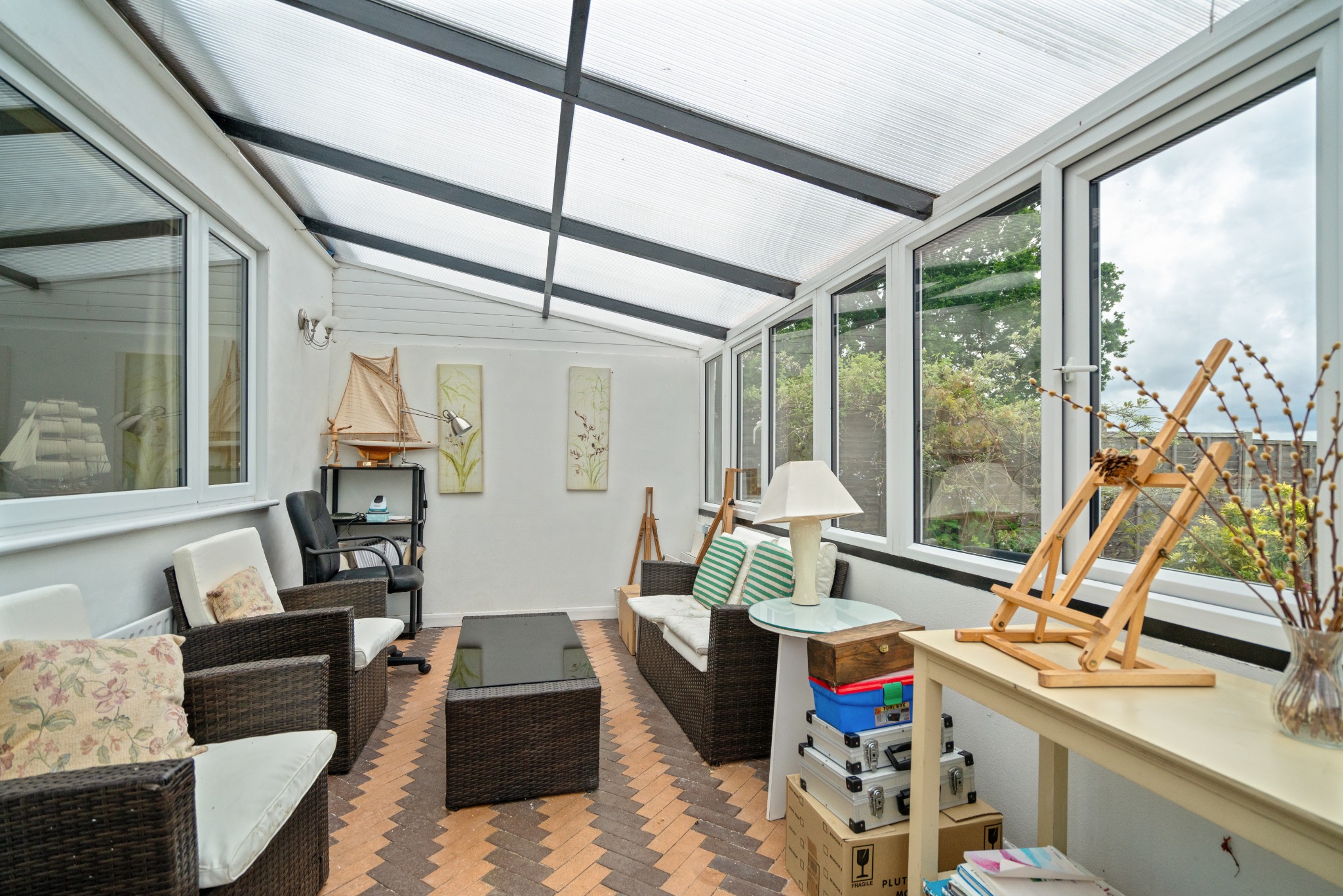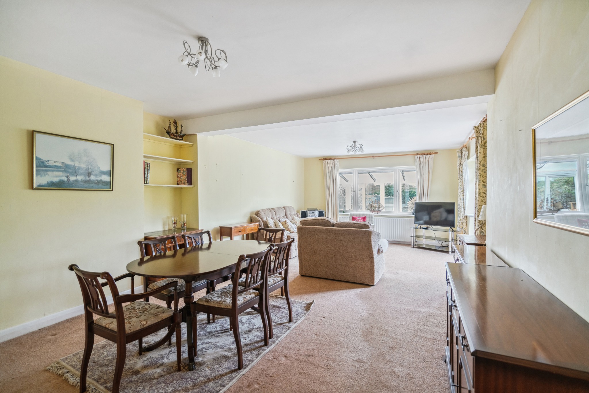 The ground floor comprises an entrance hallway with a useful store/cloak cupboard, two front-aspect bedrooms that benefit from fitted wardrobes, a generous shower room, and a well-equipped kitchen with integrated appliances. Completing the property is a large living / dining room with patio doors opening out to the garden, and a separate conservatory. The property offers great potential, with very minor cosmetic updating needed to unlock its full potential.