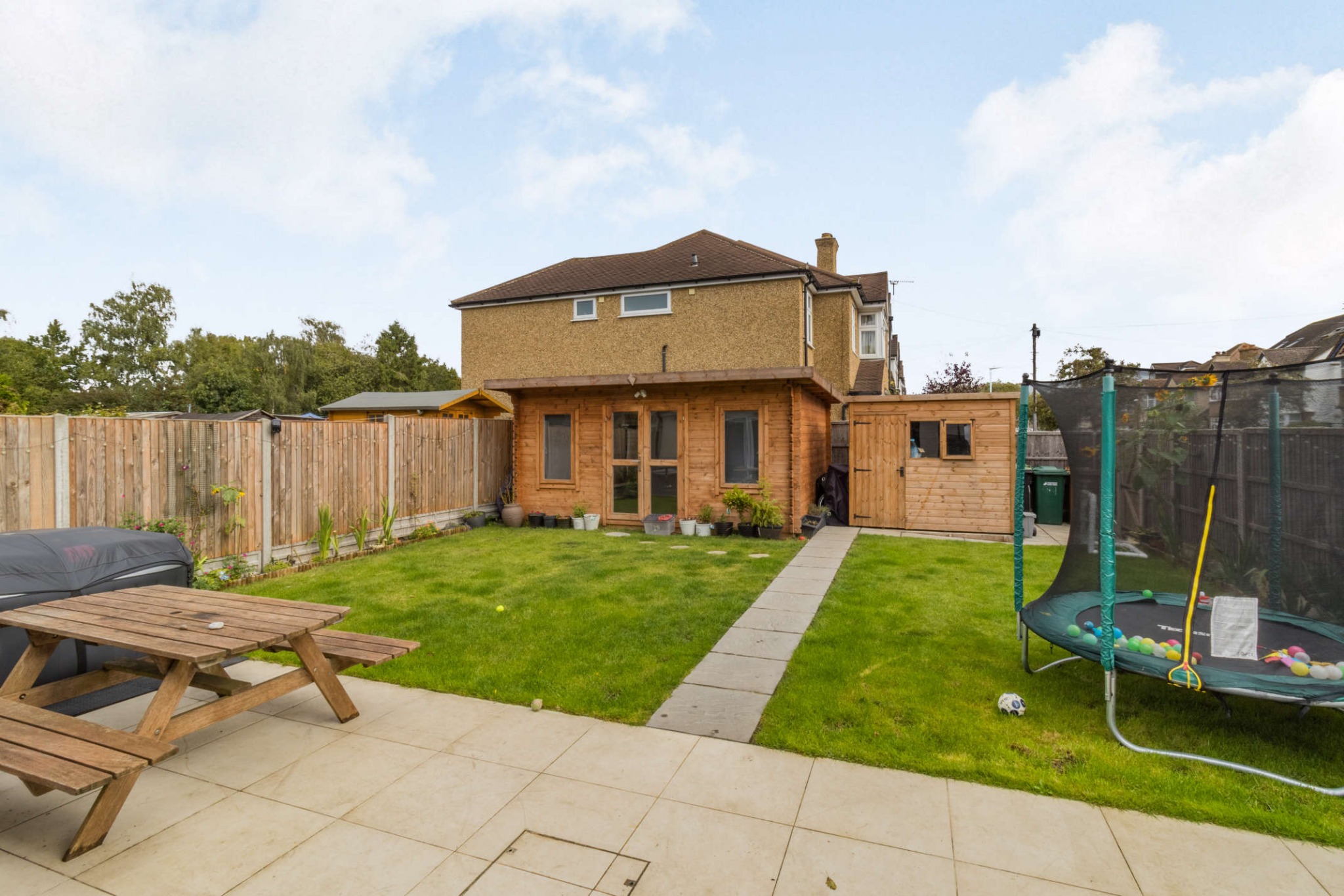 To the rear of the property is a patio area for outside entertaining with a lawned garden area. There is also a garden office/studio with power, light and underfloor heating, which has been purpose built in the last 2 years, and a garden shed.