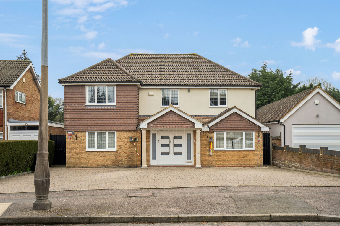 To the front, a driveway provides off-street parking for multiple vehicles, completing this exceptional family home.