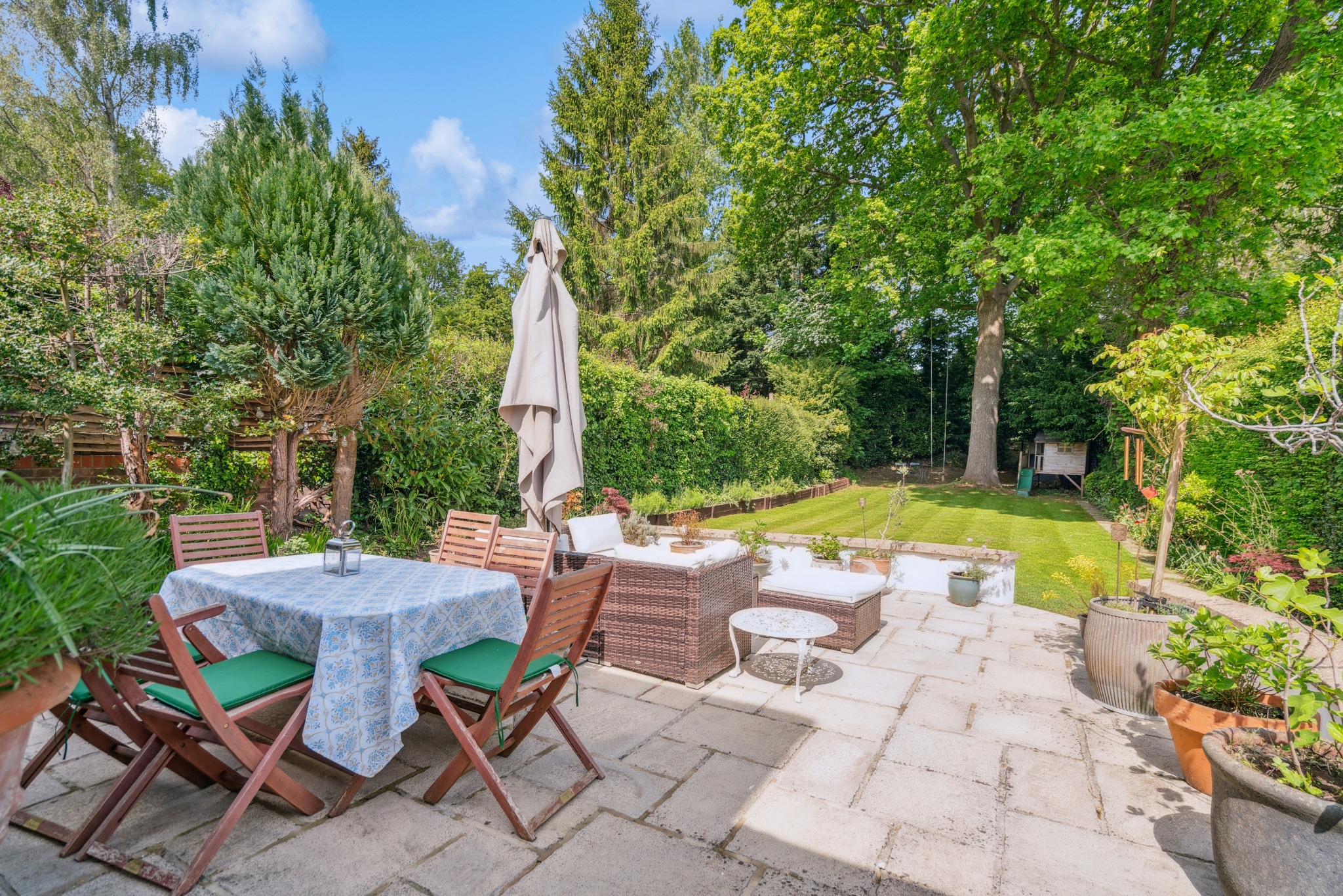 Outside, the home enjoys a substantial and private rear garden, mainly laid to lawn and framed by mature hedging and well-stocked flower beds and a garden shed. A paved terrace provides the perfect spot for al fresco dining and entertaining.
