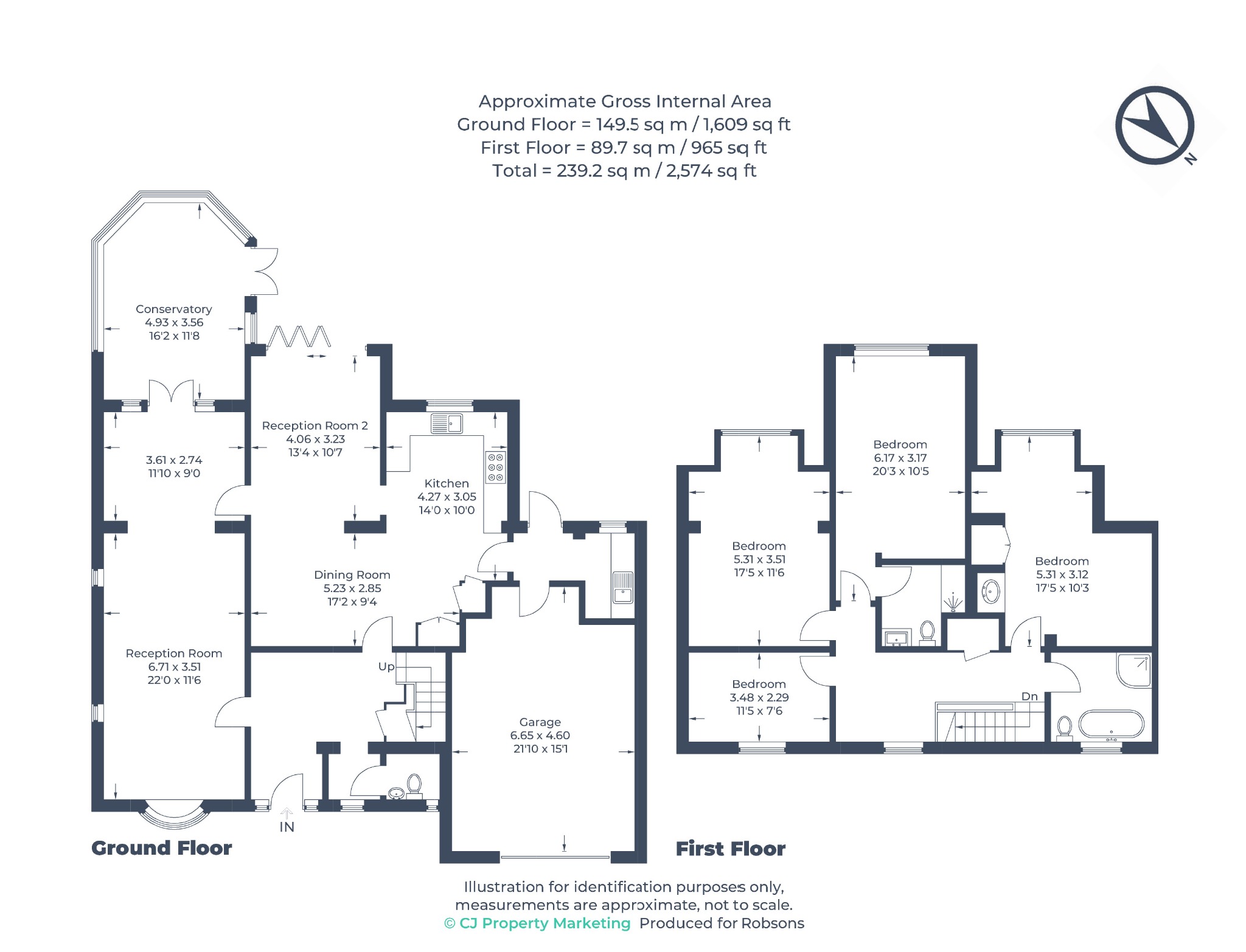 A welcoming and spacious hallway, complete with a guest WC, sets the tone for the home. The 22'0 x 11'6 reception room features a charming fireplace and French doors leading into a light-filled conservatory, also with French doors opening to the garden. A separate dining room flows into a versatile second reception room, which boasts bi-fold doors to the garden and access to the kitchen.