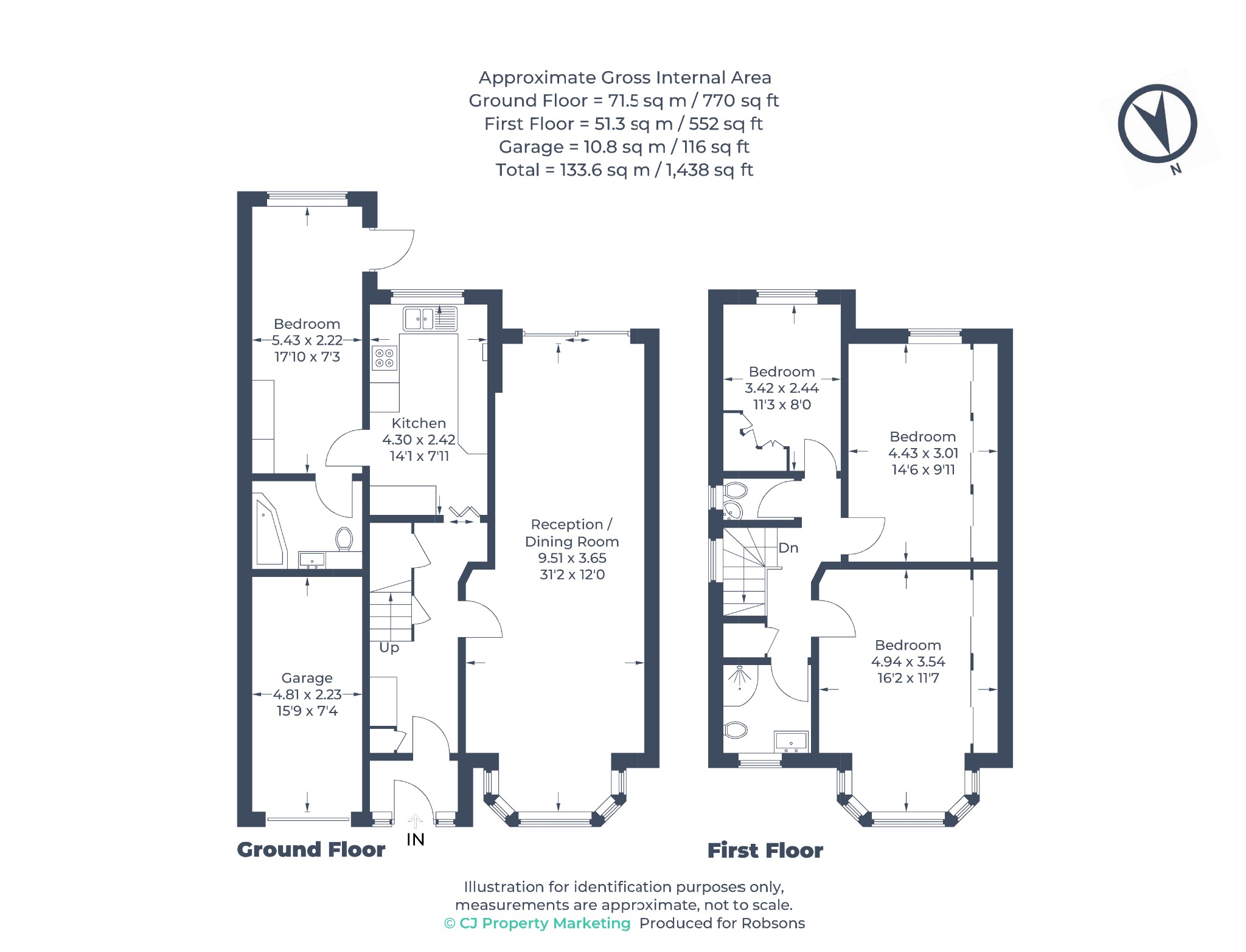 The ground floor comprises an entrance porch and hallway, a large living / dining room, a kitchen, and a ground floor bedroom with an en-suite. The ground floor bedroom benefits from direct access to the garden, and could alternatively be used as a home office. Two generous double bedrooms, a smaller double bedroom, a family shower room and a separate WC are all located on the first floor. All three bedrooms boast fitted wardrobes.