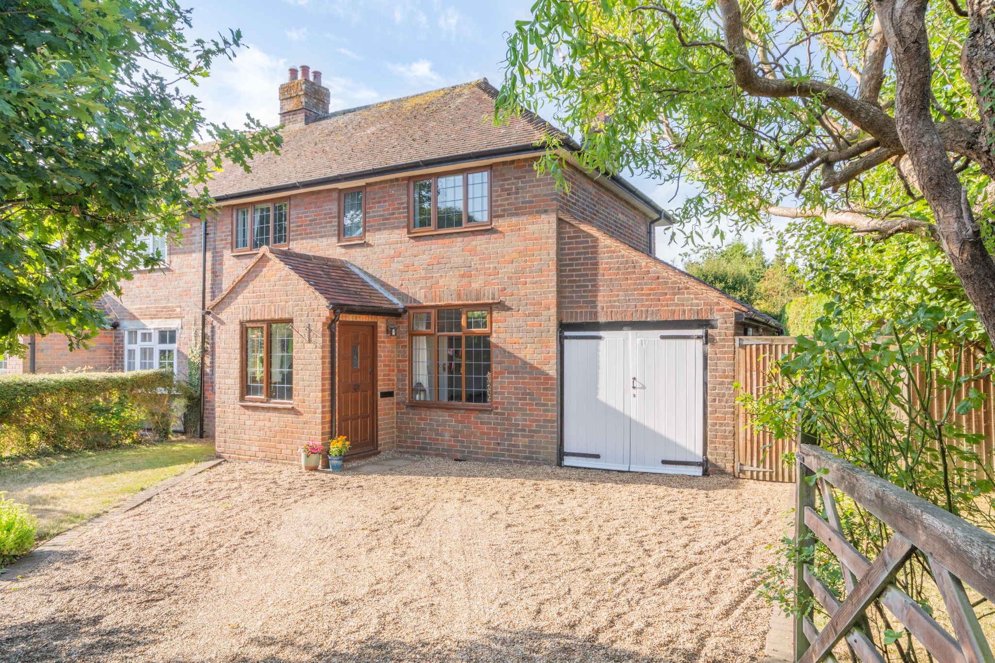 A beautifully presented three-bedroom semi-detached house including a delightful southerly facing rear garden and single garage, part of which is currently being used as stylish home office. Situated in this very popular residential location, features of note inc. an open fireplace in the living room, a spacious kitchen/breakfast room which overlooks the garden, large windows which flood the property with natural light, excellent decorative condition throughout and a contemporary bathroom. To the front is a gravel drive and area of lawn, whilst to the rear is a private 55ft garden and large timber shed.
