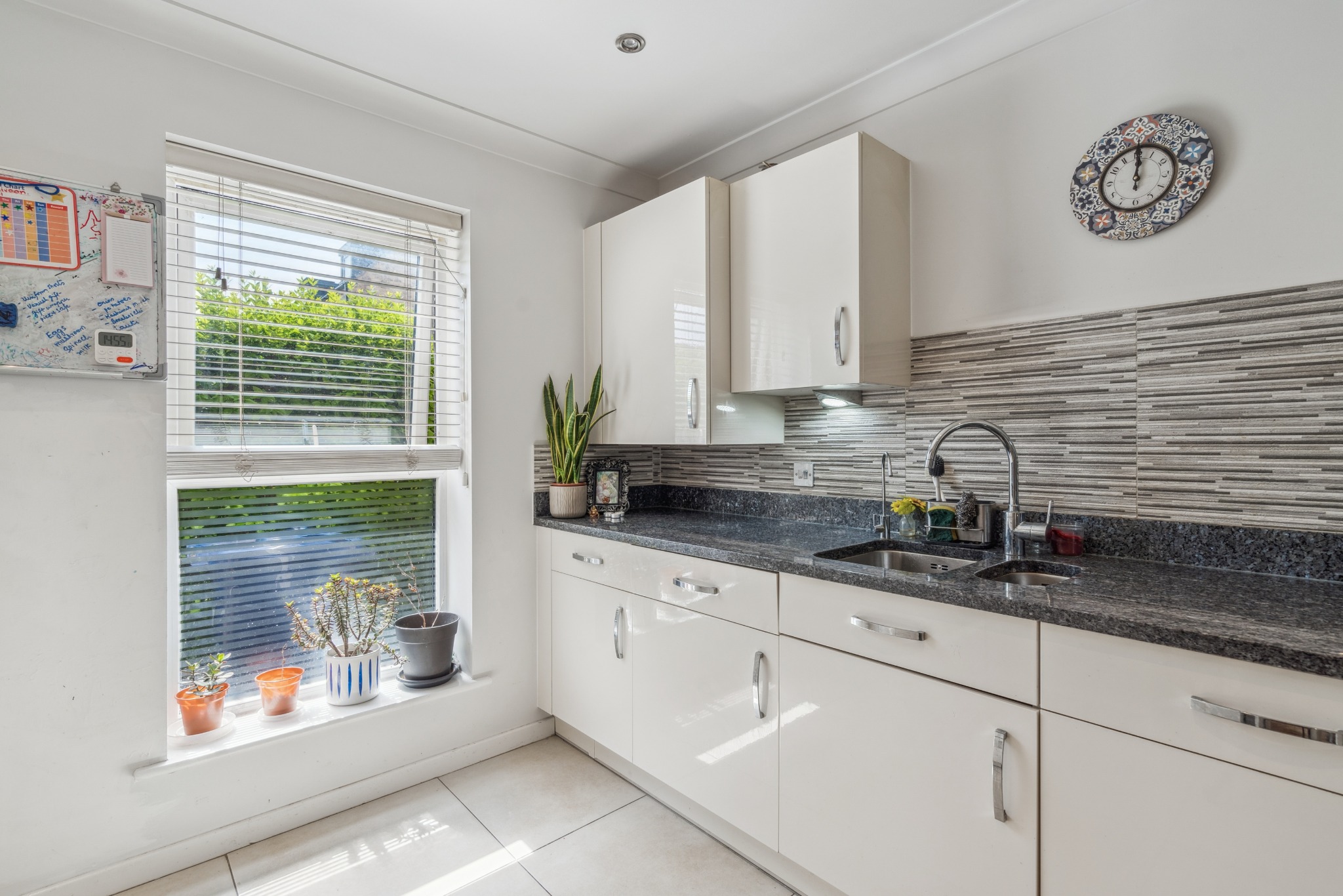 A modern and well-presented four-bedroom, two-bathroom terraced property forming part of a sought-after development within easy reach of local high streets, schools and transport facilities. The ground floor comprises an entrance hallway with stairs to the first floor, a front aspect kitchen, a guest cloakroom and a generous living / dining room with doors opening out to the garden patio. On the first floor there are two double bedrooms with fitted wardrobes, a third bedroom, and a three-piece family bathroom, with the second floor hosting the principal bedroom, complete with fitted wardrobes and an en-suite shower room.