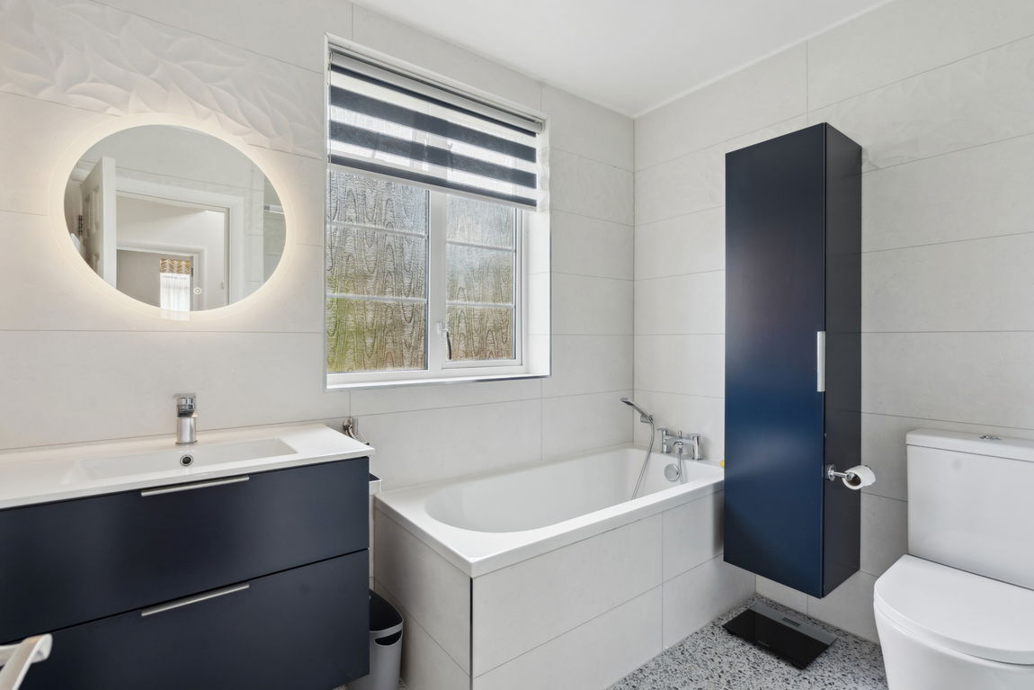 The ground floor comprises a through lounge / dining room that effortlessly flows on to a light-filled kitchen / family area. The kitchen features sleek, modern units with ample storage and integrated appliances, with the added benefit of a separate and well-equipped utility room.