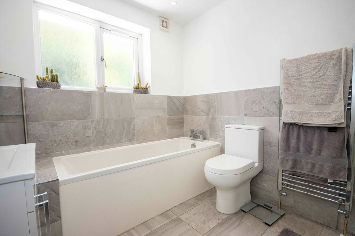The first floor hosts three well-proportioned bedrooms, including one with built-in wardrobes, and a modern family bathroom complete with a bath and shower.