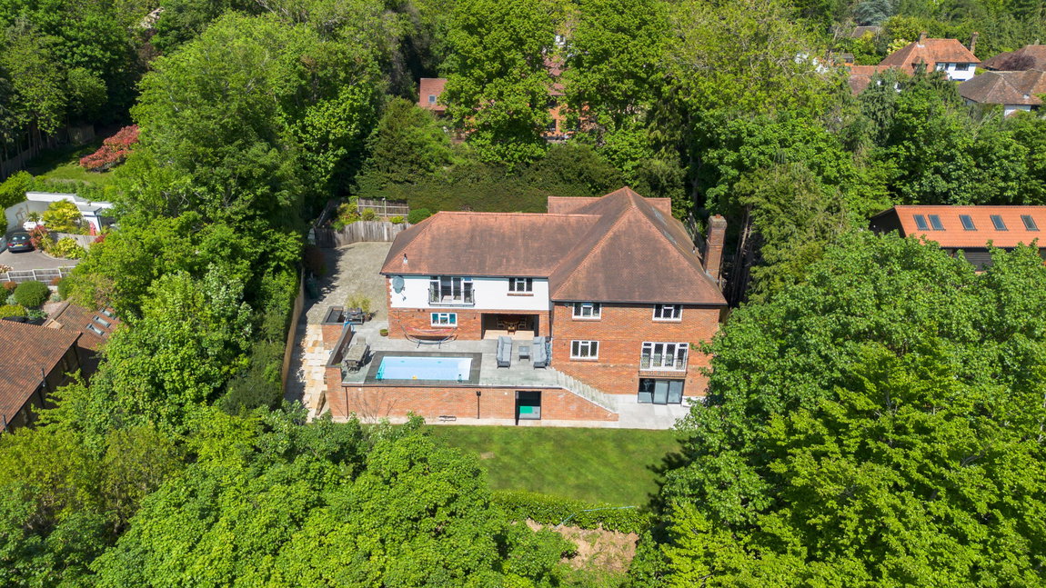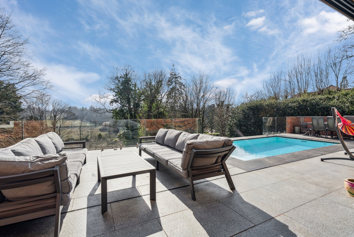 Beyond the interiors, this home is designed for wellness and recreation, featuring a large, private terraced area with breath-taking views and a fabulous heated swimming pool. Steps lead to a second terraced area with access to a gym on the lower ground level and a well-manicured garden. A self-contained annexe above the garage offers a kitchenette, shower room and a bed/living room and provides the perfect space for guests or staff.