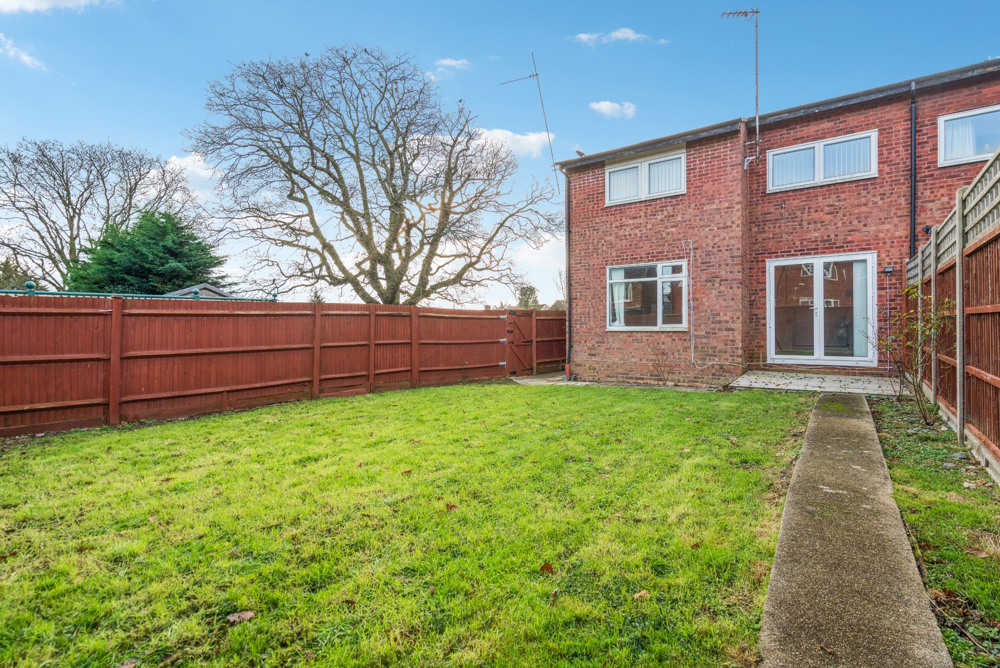 The property benefits from a good-sized rear garden that is laid to lawn with a small patio area, as well as a gated front garden.