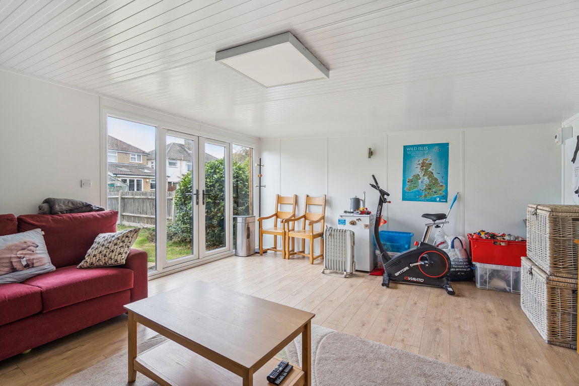 Externally, the property boasts an attractive rear garden laid to lawn, with a pathway leading to a versatile home office/studio, perfect for working from home or as a creative space.
