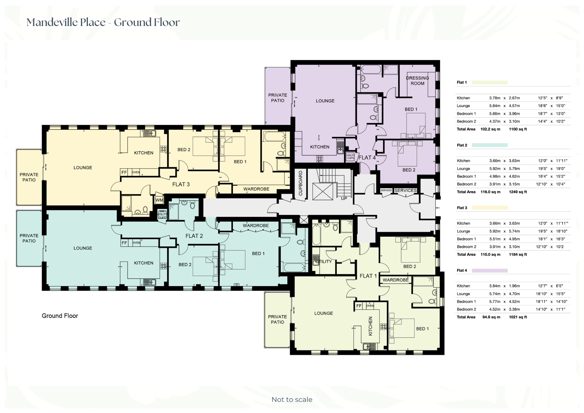Set in the charming historic Amersham Old Town, Mandeville Place is a development of just eight substantial, luxury, individual apartments, created by renowned local builders, W.E Black Ltd. Apartment 2 is located on the Ground Floor with direct access from the Living Room to a patio. The property comprises a spacious apartment with contemporary kitchen with Neff cooking appliances, open plan to the large living area, principle bedroom with ensuite bathroom, a second double bedroom and guest shower room. There are two allocated car parking spaces behind security gating and EV charging. The properties will be sold with a 999 year lease to a resident-controlled freehold company. Council Tax Band: TBC.